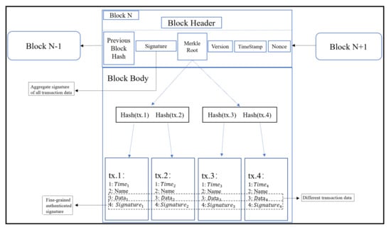 The security of network technology has always been a frontier worthy of research. Shaukat [26,27] summarized the cyber security issues regarding the rapidly evolving technologies. For the development of blockchain security, Halpin [28] proposed an introduction to security and privacy on the blockchain. As blockchain technology evolves, many researchers have recognized cryptography as essential for analyzing and addressing blockchain security concerns. Li [29] utilized puncturable signatures in cryptography to resolve the issue of long-range attacks in the blockchain’s Proof of Stake protocol. Signature technology is the core of cryptography. It can effectively solve many blockchain security problems.