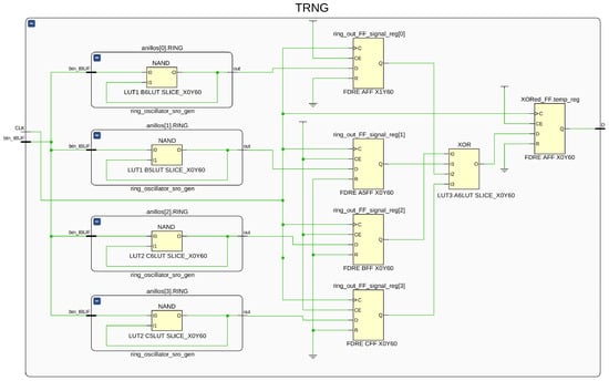 - Fischer, V.; Bernard, F.; Bochard, N.; Varchola, M. Enhancing security of ring oscillator-based TRNG implemented in FPGA. In Proceedings of the 2008 International Conference on Field Programmable Logic and Applications, Heidelberg, Germany, 8–10 September 2008; pp. 245–250. [Google Scholar]