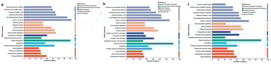 Figure 5 shows the top 20 enriched pathways by comparing unigenes to the KEGG database, including cancer: overview, signal transduction, endocrine system, immune system, folding, sorting and degradation, transport, and catabolism.