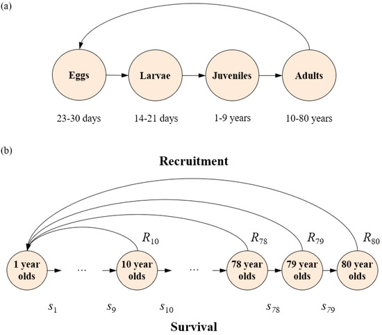 - Caswell, H. Matrix Population Models, 2nd ed.; Sinauer Associates: Sunderland, MA, USA, 2001; p. 746. [Google Scholar]
