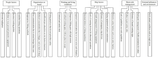 Each of the six factors is composed of several sub-factors; this study used these sub-factors to design the survey questions (Figure 3). To aid the fishermen’s understanding, each sub-factor was presented with appropriate examples.