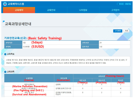 - Available online: https://edu.seaman.or.kr/eduRsv/main.do (accessed on 11 September 2024).
