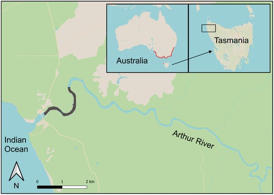 Historically, estuary perch were distributed across other estuaries of northern Tasmania, but today these populations have disappeared, with only one known remnant population remaining within the Arthur River. The Arthur River estuary is located on the northwest coast of Tasmania and is one of the most remote and untouched waterways in Tasmania, with no records of damming. The estuary is large (exceeding 14 km) and the upper freshwater component spreads into a network of tributaries, reaching 180 km in length [6].