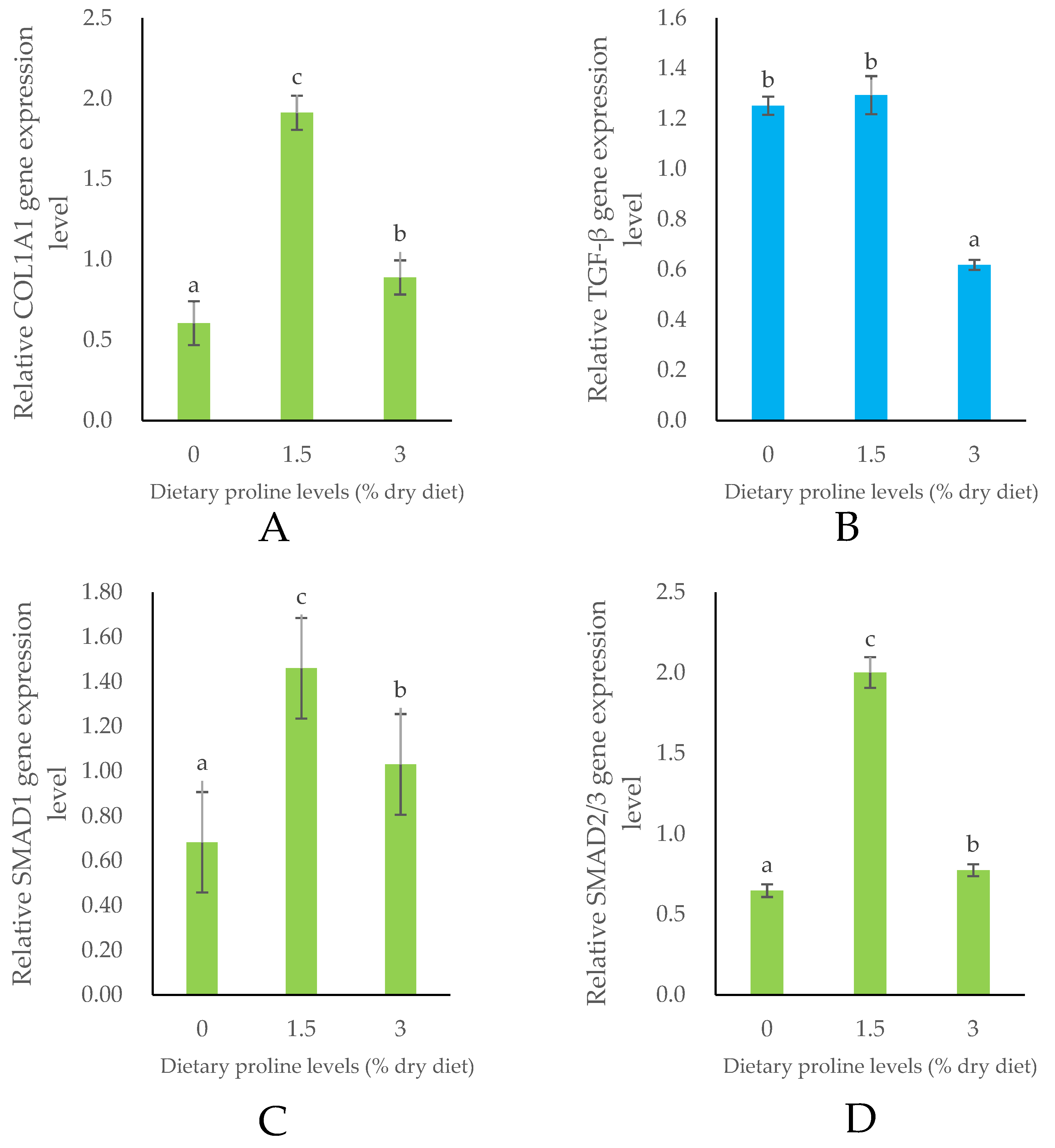 | Dietary Proline Levels (% Dry Diet) | |||