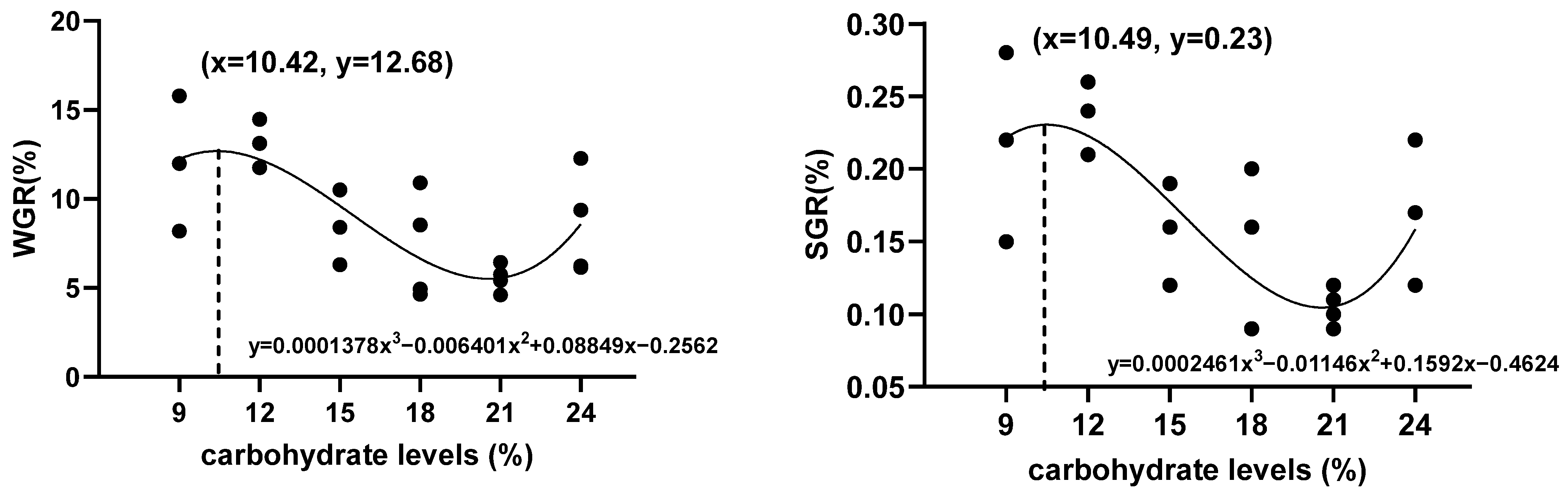 4.1. Low-Carbohydrate Diet Improves Growth Performance