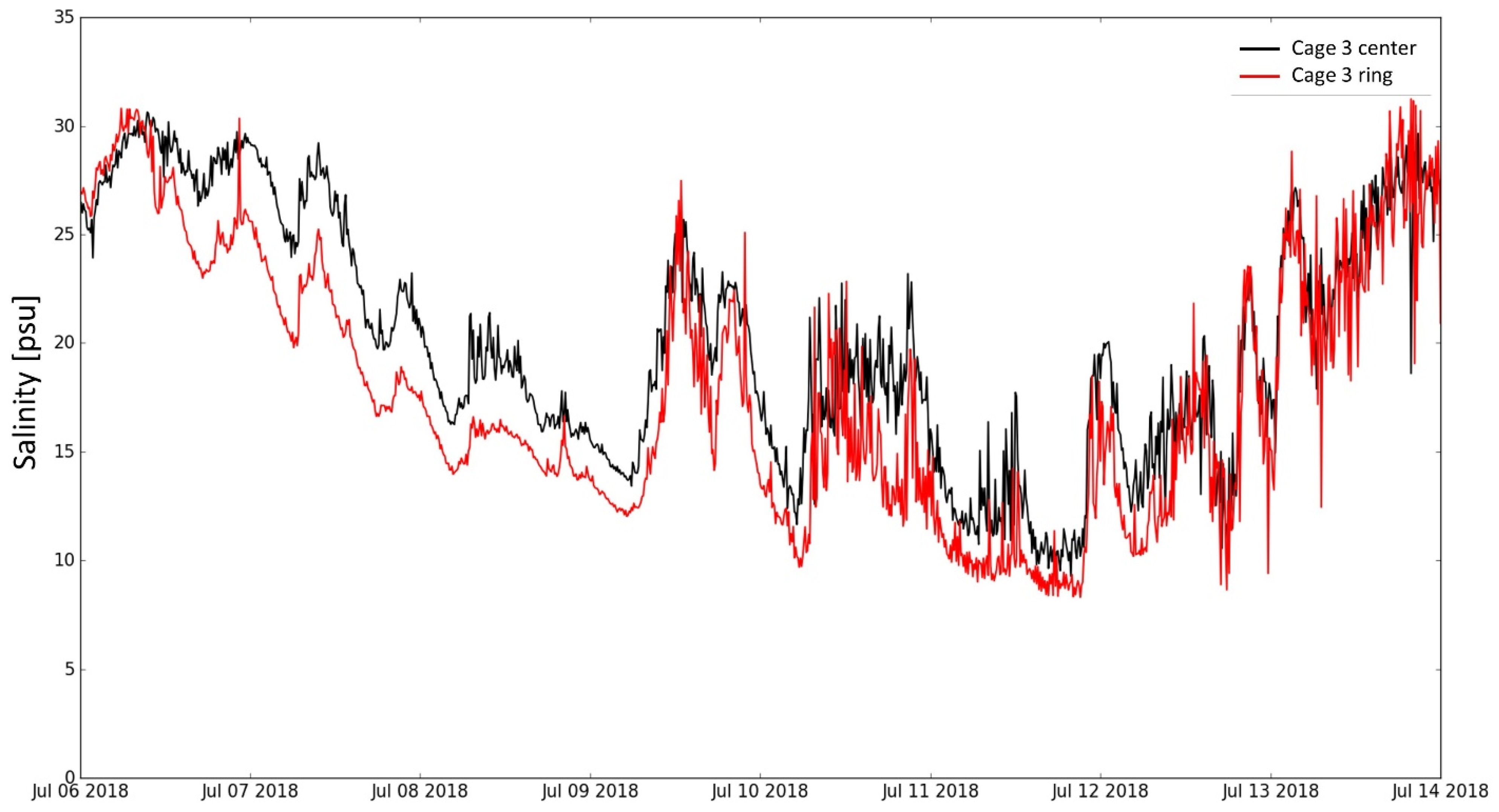 - Crosbie, T.; Wright, D.W.; Oppedal, F.; Johnsen, I.A.; Samsing, F.; Dempster, T. Effects of step salinity gradients on salmon lice larvae behaviour and dispersal. Aquac. Environ. Int. 2019, 11, 181–190. [Google Scholar] [CrossRef]