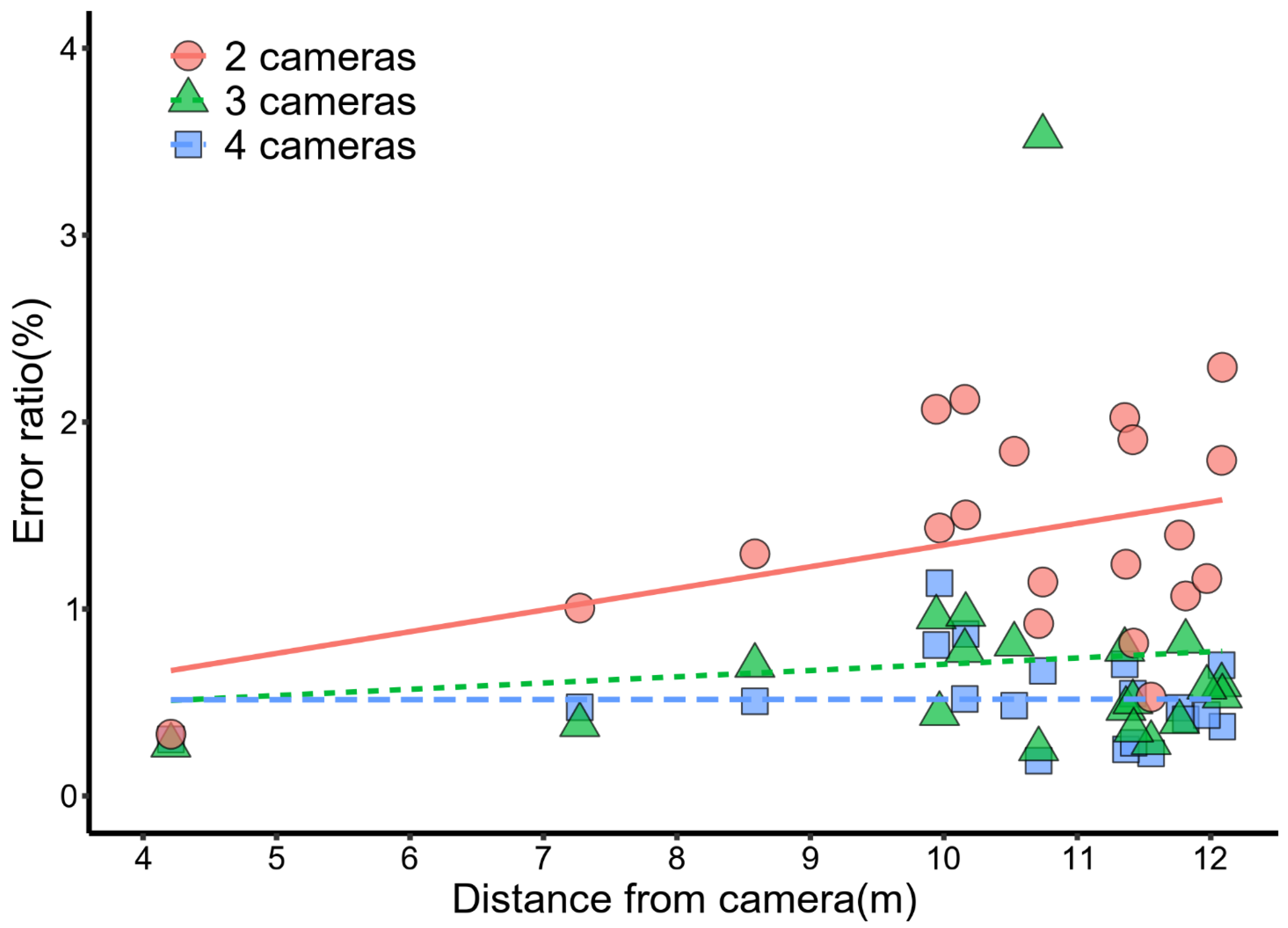 | 4 cameras | 0.017 | 18 | 0.990 | 0.004 | y = 0.00050x + 0.51 | 4.2 | 18 | 0.0006 | 0.70 | y = 1.6x − 8.0 |