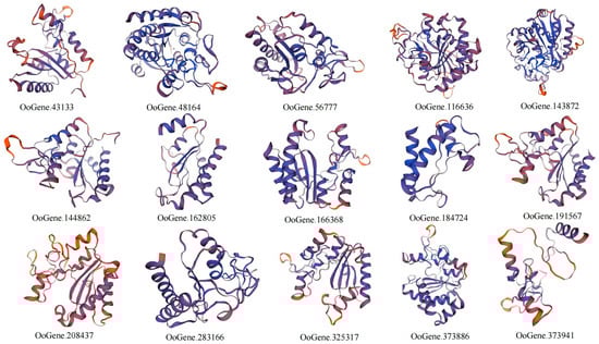 Three-dimensional protein structure prediction models for the MCP M14 gene family members of O. oratoria.