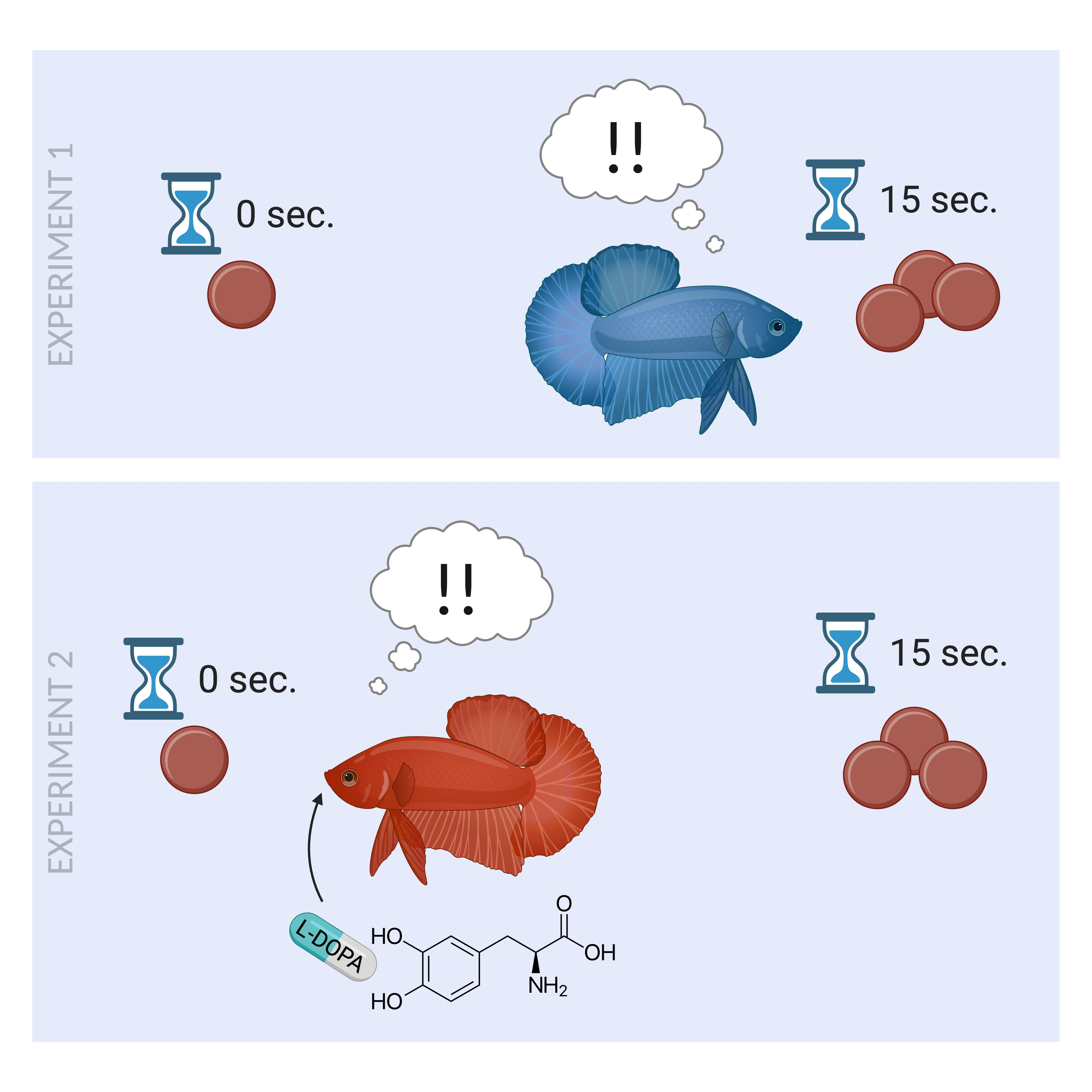 Velkey, A.; Watson, K.; White, N.; Agi, A.; Doebler-Alligood, G.; Tilmont, I.; Williams Sweeten, B.; Kinslow, K. Oral L-Dopa Disrupts Behavioral Self-Control in Male Fighting Fish (Betta splendens). Fishes 2025, 10, 518. https://doi.org/10.3390/fishes10100518