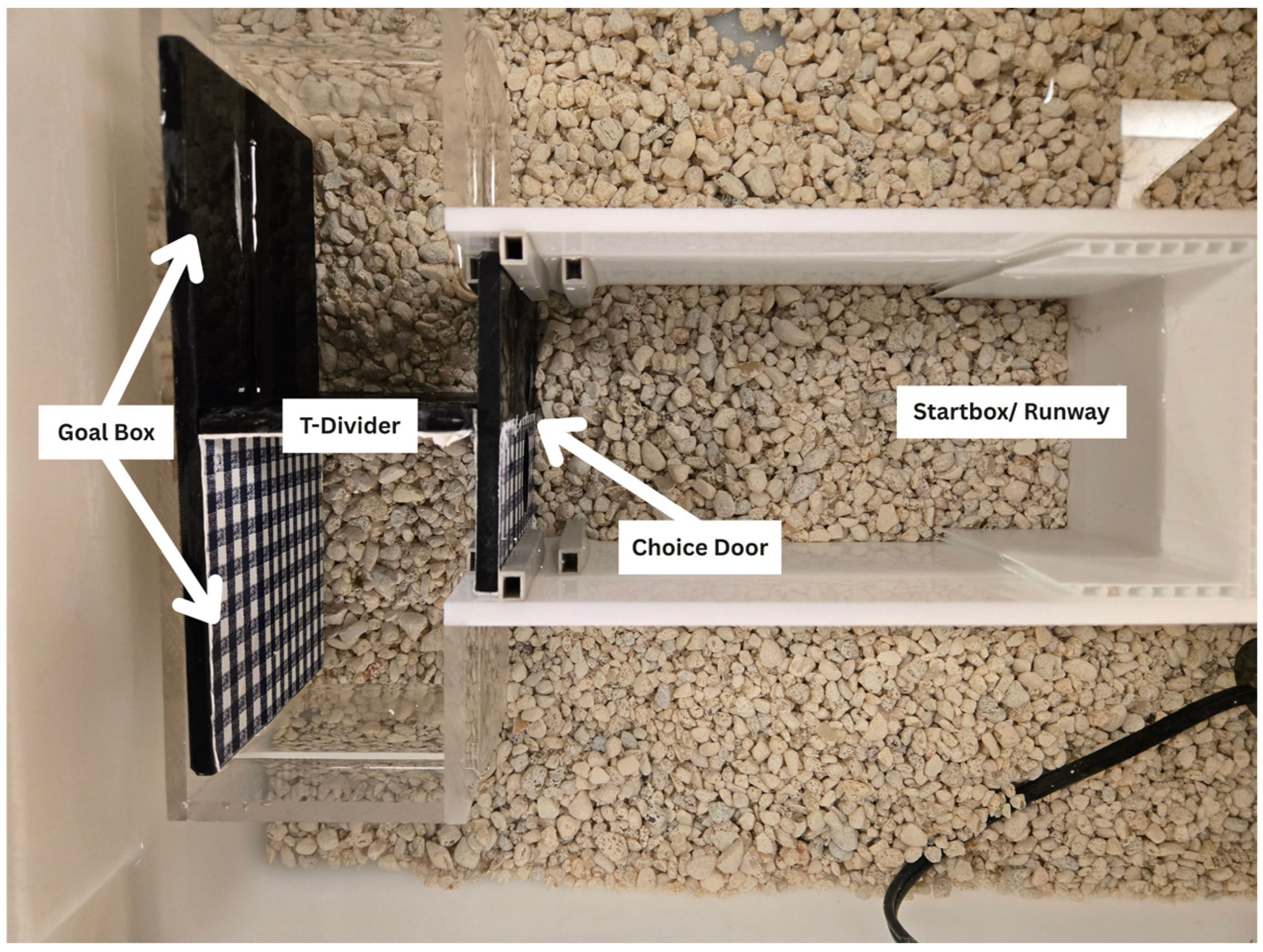 - Craft, B.B.; Szalda-Petree, A.D. Effect of various discriminative stimuli on choice behavior in male Siamese Fighting Fish (Betta splendens). Percept. Mot. Ski. 2007, 104, 575–580. [Google Scholar] [CrossRef] [PubMed]