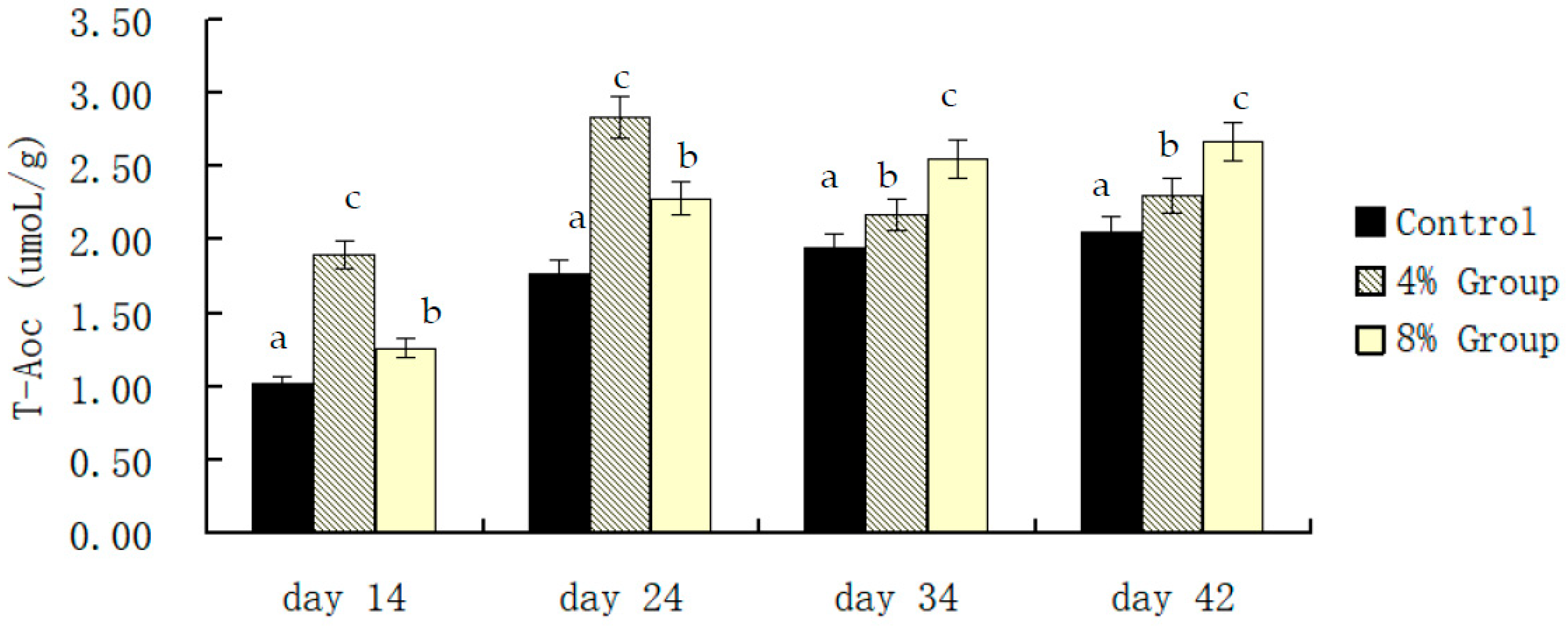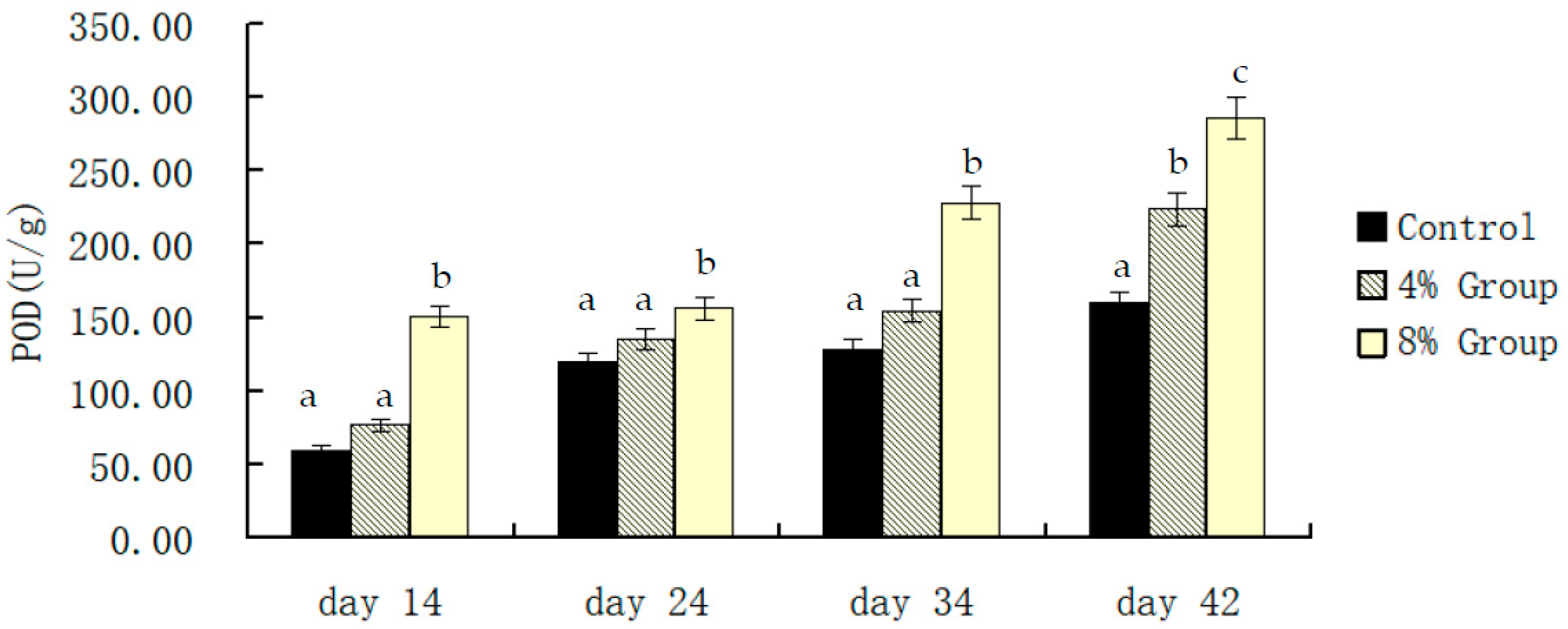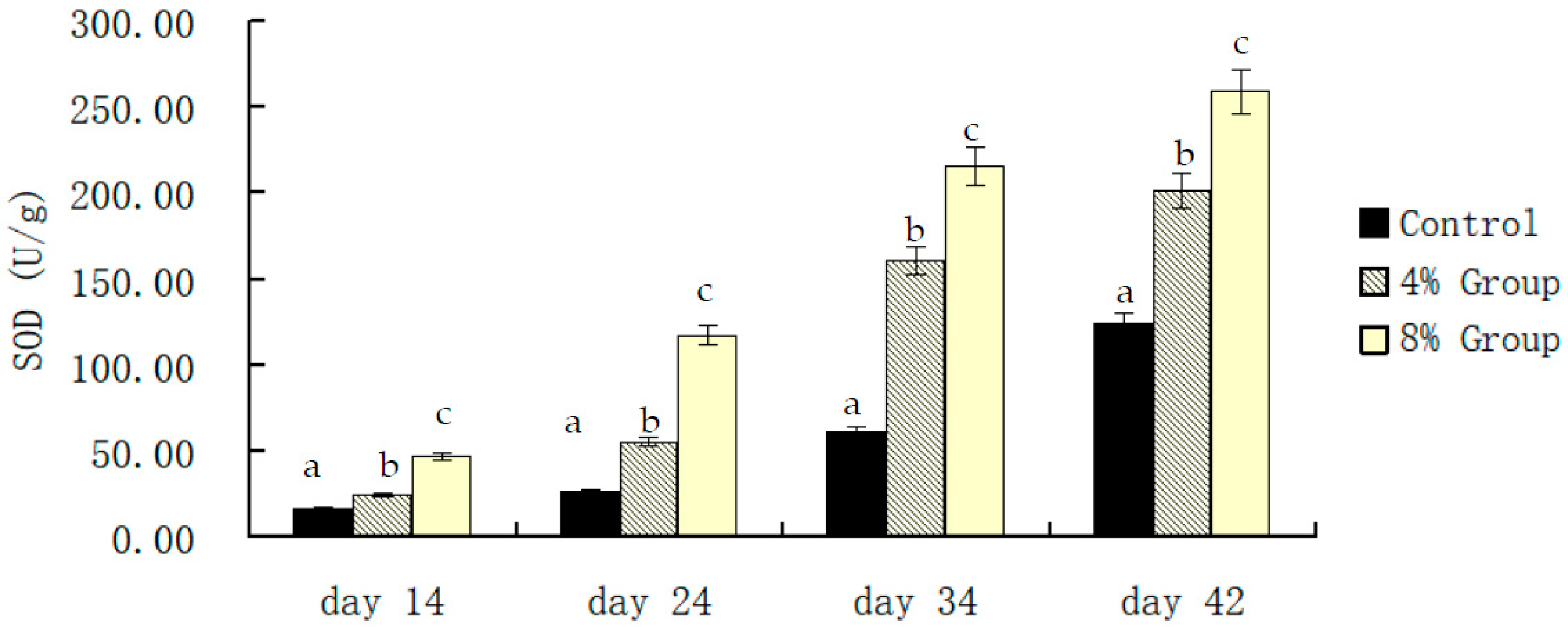 4% group | 88.96 ± 0.33 c | 13.12 ± 0.08 a | 0.30 ± 0.01 a | 6.22 ± 0.01 b | 8.25 ± 0.07 b |