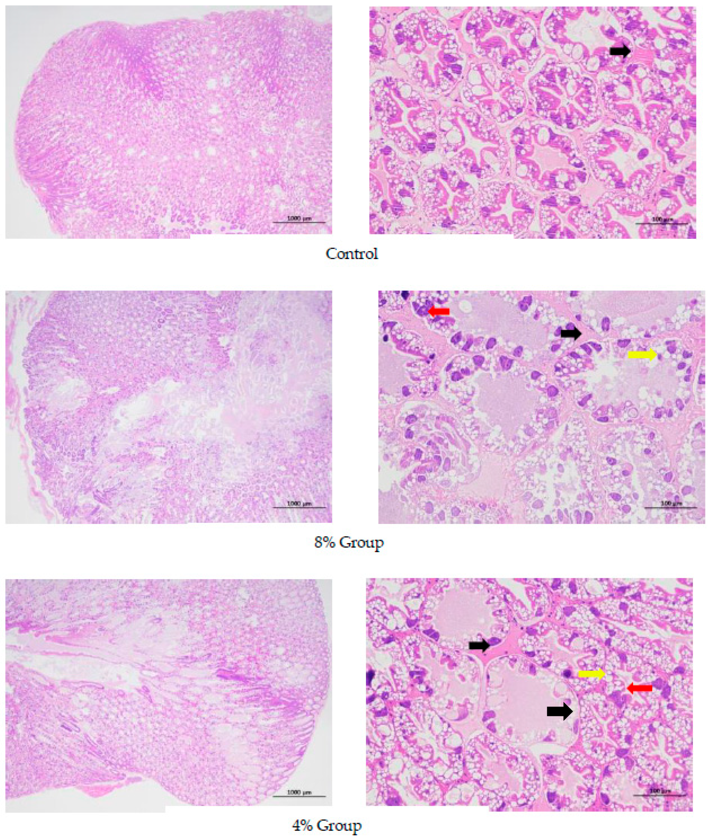 8% group | 96.52 ± 0.89 a | 13.32 ± 0.13 a | 0.30 ± 0.01 a | 6.07 ± 0.07 b | 11.69 ± 0.13 a |