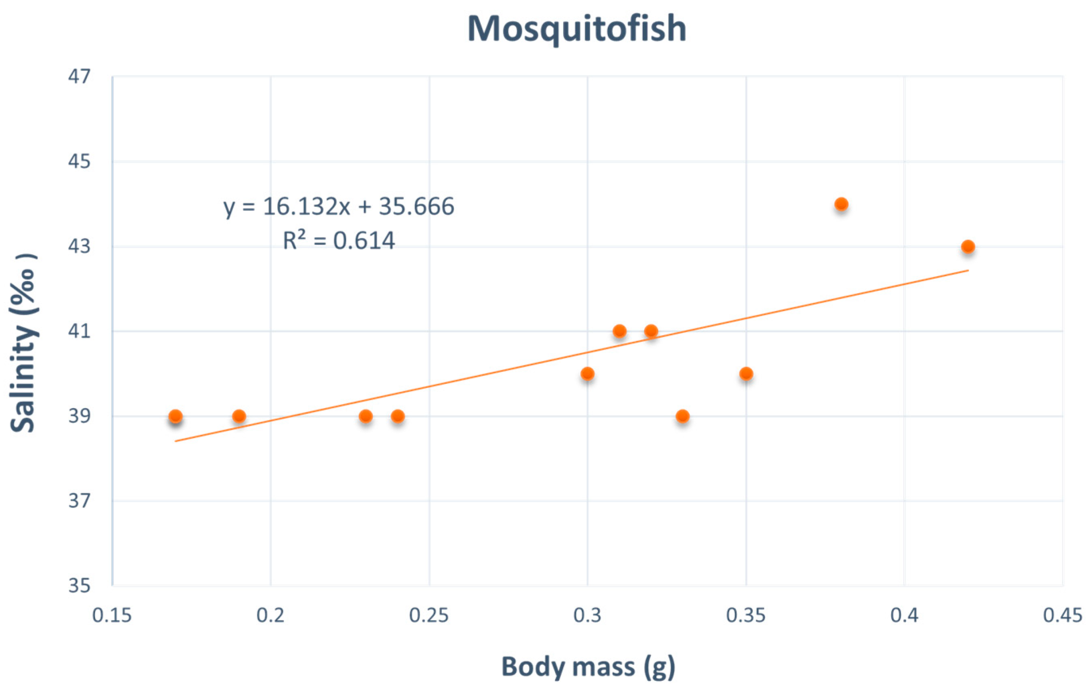 - Nordlie, F.G.; Mirandi, A. Salinity relationships in a freshwater population of eastern mosquitofish. J. Fish Biol. 1996, 49, 1226–1232. [Google Scholar] [CrossRef]