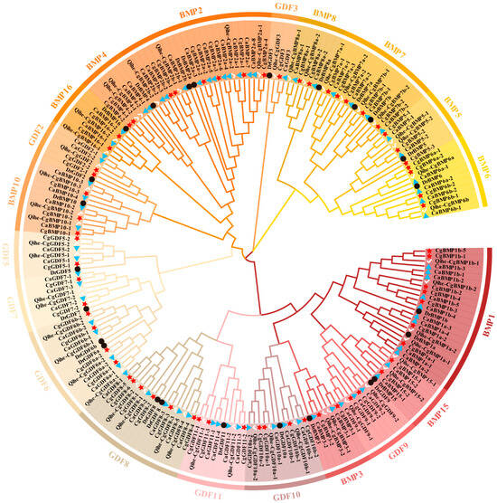 The Transforming Growth Factor Beta (TGF-β) superfamily includes more than 40 signaling proteins, which play an important regulatory role during the development process. These proteins are effective regulators of cell growth and differentiation [3]. Based on the differences in sequence structure characteristics and biological functions, the protein members within the TGF-β superfamily are further divided into the transforming growth factor-β (TGF-β) subfamily, the decapentaplegic/vg-1-related (DVR) subfamily, the activin/inhibin subfamily, and potentially other subfamilies yet to be characterized [4]. The DVR subfamily is one of the most extensively studied subfamilies within the TGF-β superfamily. It is composed of two major groups of proteins: Bone Morphogenetic Protein (BMP) and Growth Differentiation Factor (GDF) [5]. Both BMP and GDF share structural similarities with other TGF-β superfamily members, featuring a highly conserved cysteine residue domain that is typically located in the C-terminal mature region of the protein. This unique structural signature serves as a hallmark feature of the TGF-β superfamily. It plays a critical role in maintaining the protein’s tertiary structure and biological activity. The evolutionary conservation of this domain ensures functional stability among DVR gene family members, which are part of the TGF-β superfamily, across evolutionary timescales. Reiner et al. investigated the evolutionary characteristics of signal peptide sequences in DVR gene family members (e.g., BMP15 and GDF9), revealing that these sequences are encoded by orthologous DNA fragments [6]. Despite significant sequence divergence, the functions of these proteins exhibit convergence, providing a theoretical foundation for understanding the functional evolution in protein-coding regions. Functionally, DVR family members exhibit both overlap and divergence, playing highly diverse roles across various developmental processes [7]. DVR genes play critical regulatory roles during embryonic development, acting as extracellular signaling molecules that mediate tissue interactions, including cell differentiation [8], tissue formation [9], and activation of specific signaling pathways to influence cellular and tissue morphogenesis [10]. The DVR family comprises 22 subtypes in the human genome [11], whereas aquatic species possess 20 subtypes [12]. This variation in subtype number may reflect differences in the complexity of developmental processes and functional requirements among species. Further investigation into the evolutionary and functional significance of these subtypes could provide valuable insights into the diverse roles of DVR genes across different organisms.