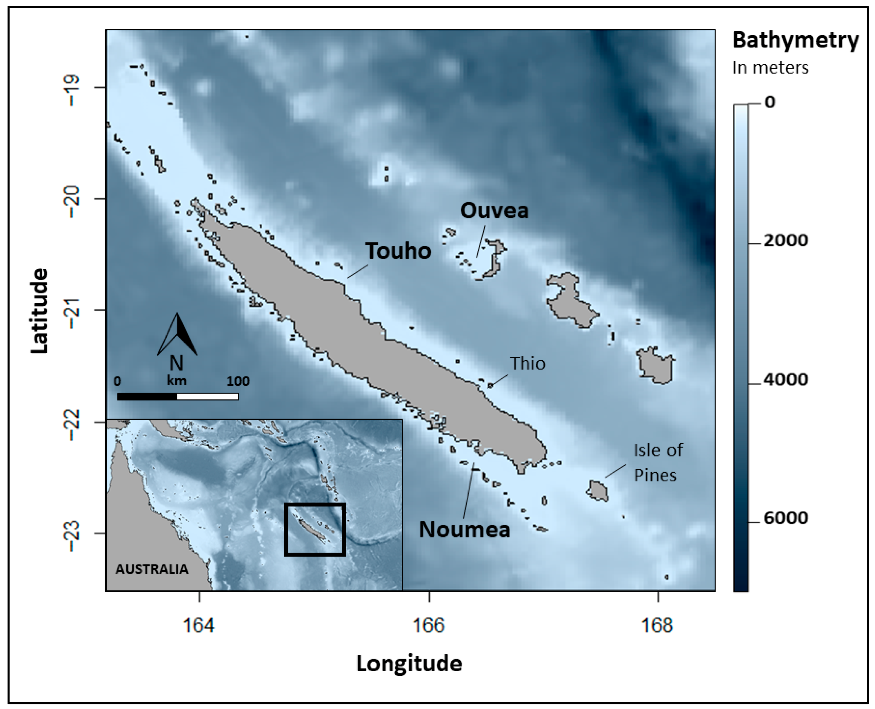 - Lassauce, H.; Dudgeon, C.L.; Armstrong, A.J.; Wantiez, L.; Carroll, E.L. Evidence of fine-scale genetic structure for reef manta rays Mobula alfredi in New Caledonia. Endang. Species Res. 2022, 47, 249–264. [Google Scholar] [CrossRef]