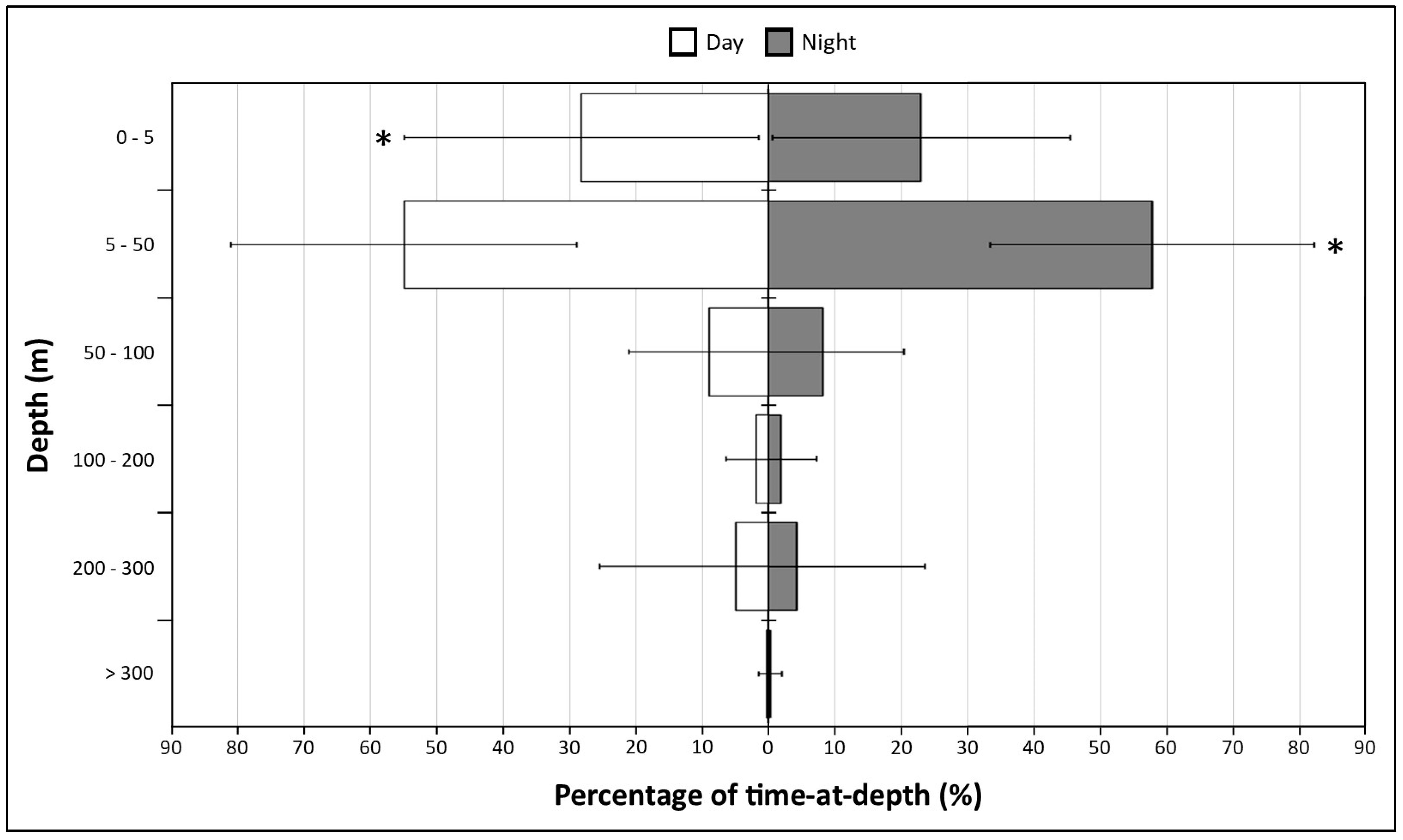 3.2. Overall Dive Activity (From Transmitted Data, n = 19)
