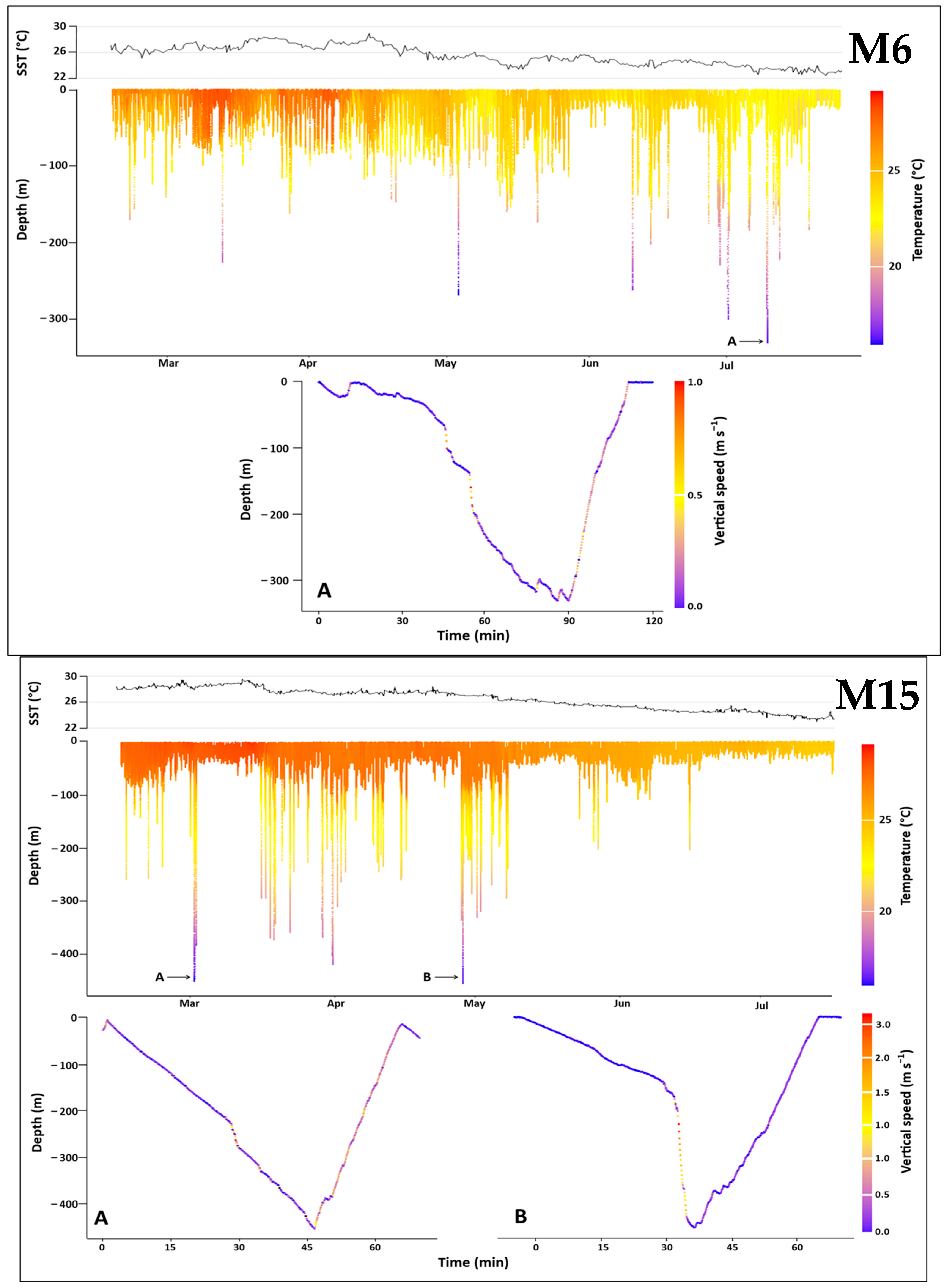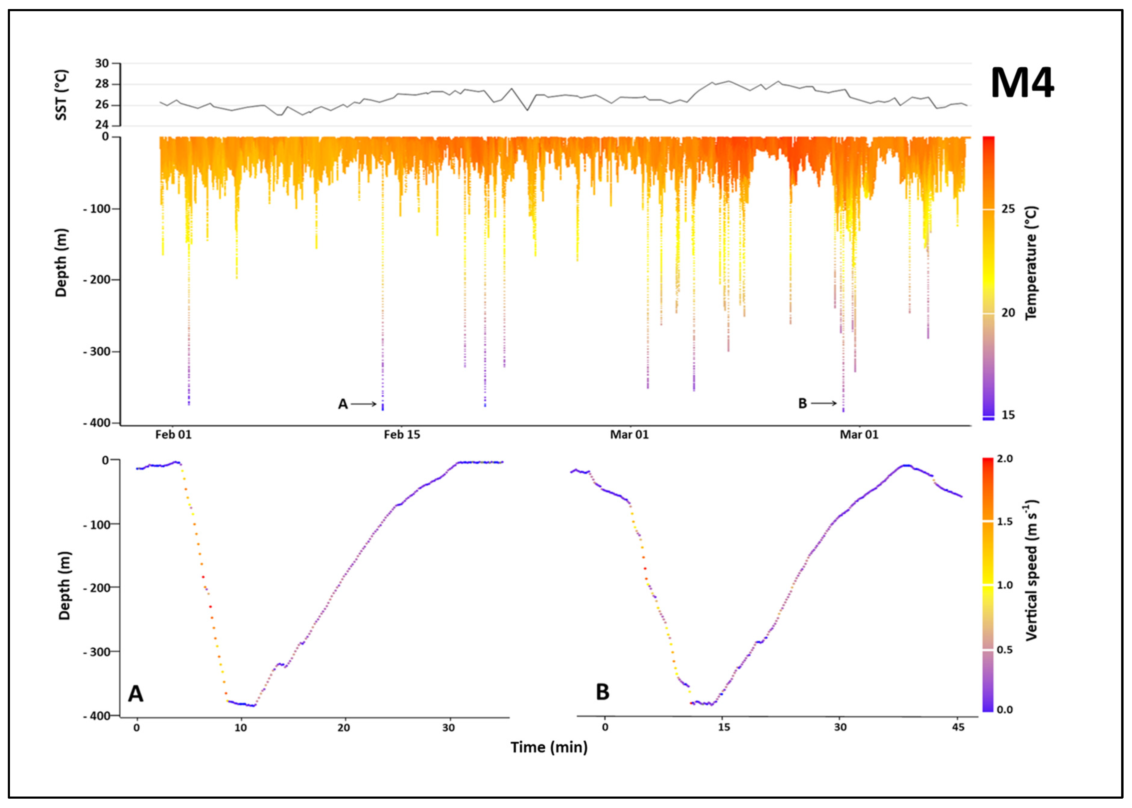 3.3. Dive Profile Analysis (From Archived Data, n = 3 Recovered Tags)