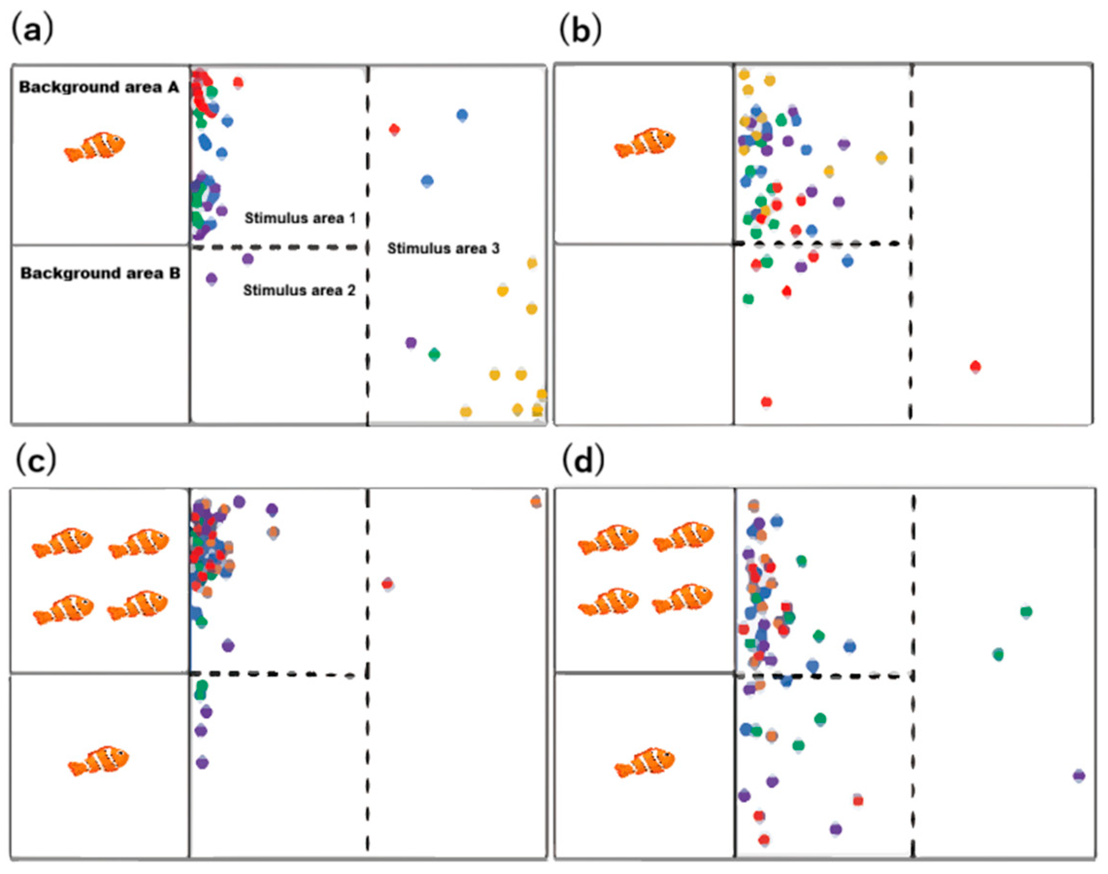 - Zhang, N.; Li, J.; Fu, C. Percentage of starved individuals in a group and simulated predation risk on the collective behavior of Chindongo demasoni. Acta Hydrobiol. Sin. 2023, 47, 989–996. [Google Scholar]