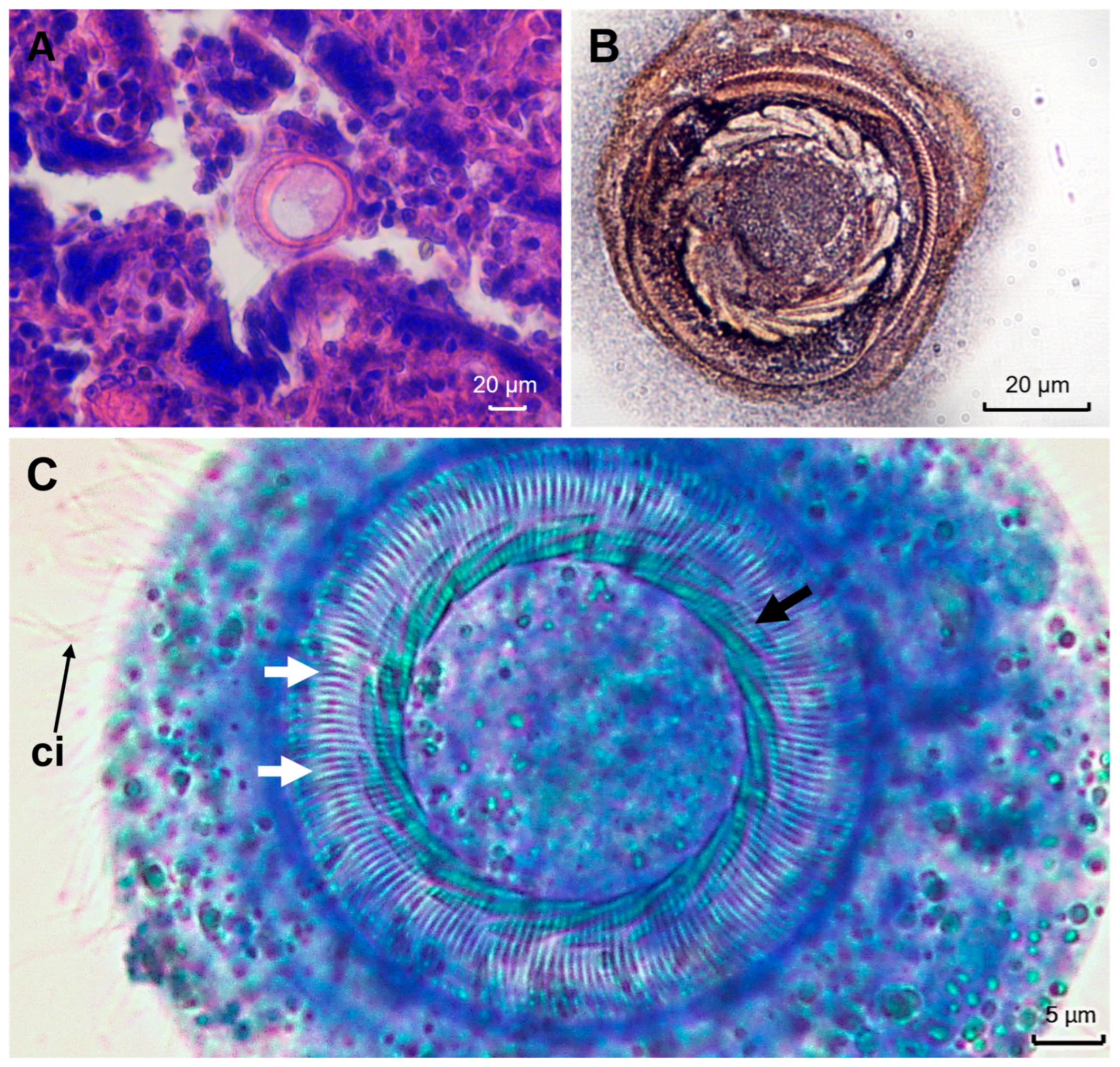 - Souidenne, D.; Furuya, H. Protist (Ciliates) and related diseases. In Handbook of Pathogens and Diseases in Cephalopods; Gestal, C., Pascual, S., Guerra, Á., Fiorito, G., Vieites, J.M., Eds.; Springer International Publishing: Cham, Switzerland, 2019; pp. 153–158. ISBN 978-3-030-11330-8. [Google Scholar]