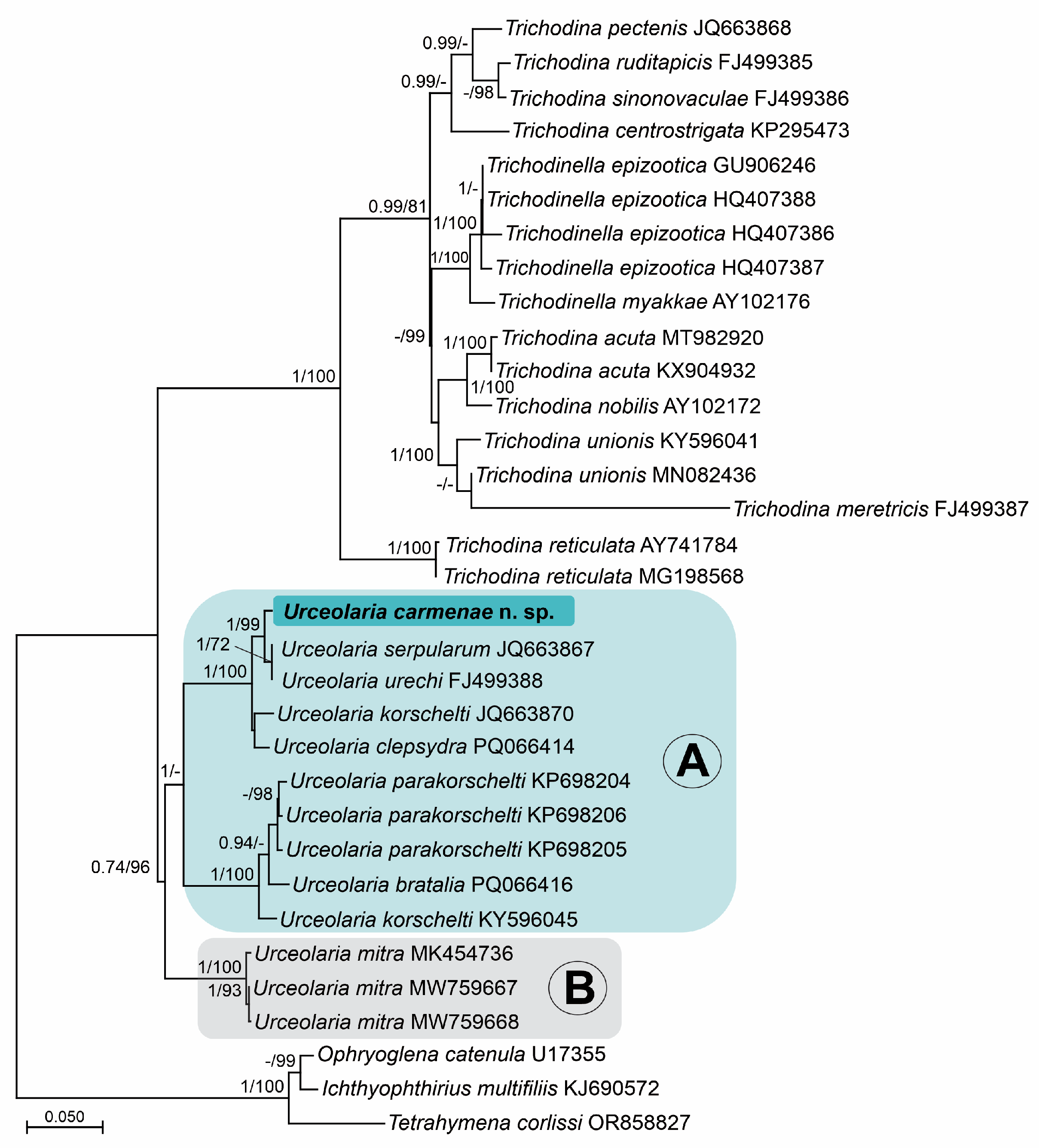 | 1 | Urceolaria carmenae n. sp. (This study) | 98.8 | 98.8 | 97.1 | 90.9 | 90.5 | 90.3 | 97.3 | 90.6 | |