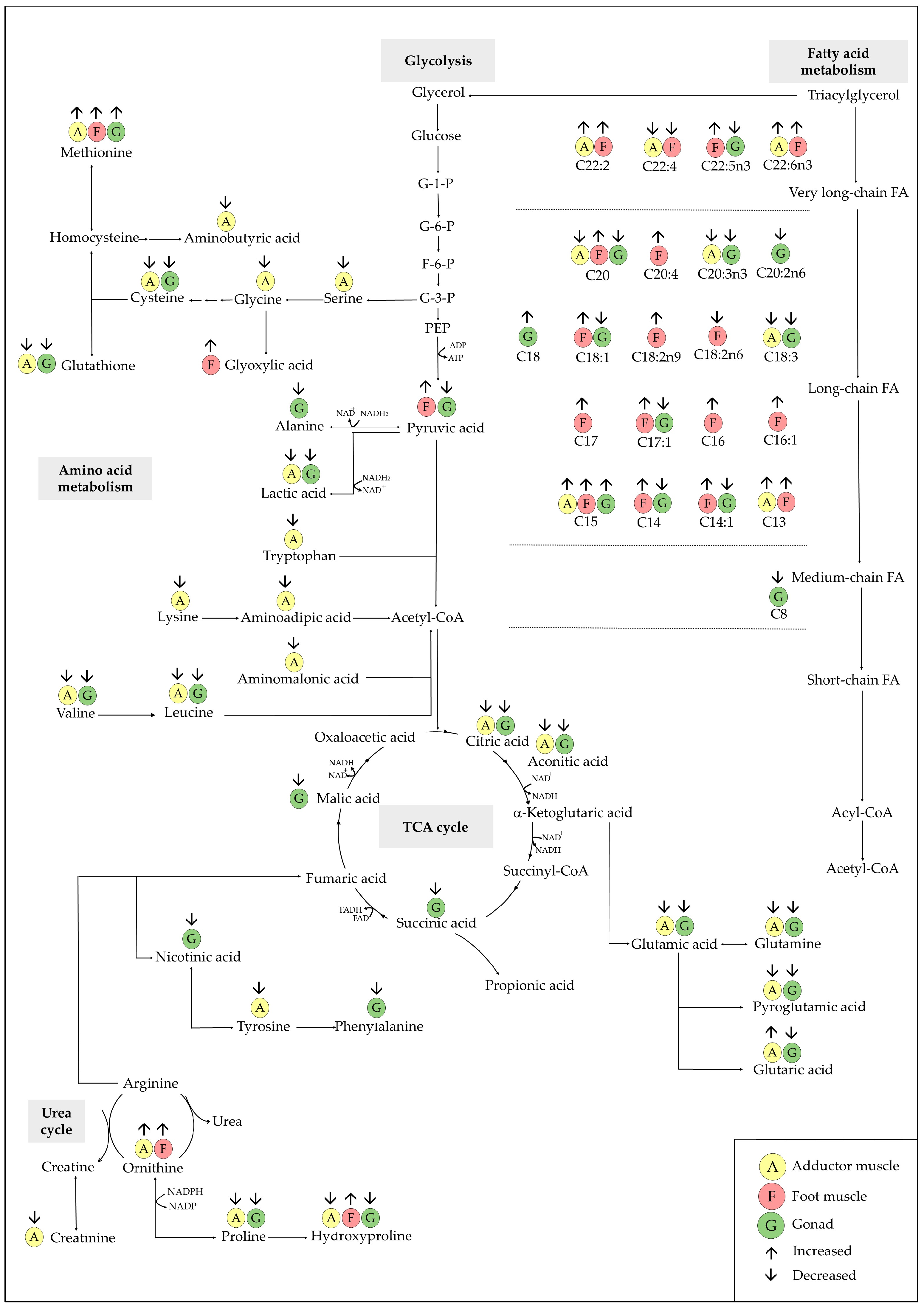 - Mateos, H.T.; Lewandowski, P.; Su, X. Seasonal variations of total lipid and fatty acid contents in muscle, gonad and digestive glands of farmed Jade Tiger hybrid abalone in Australia. Food Chem. 2010, 123, 436–441. [Google Scholar] [CrossRef]