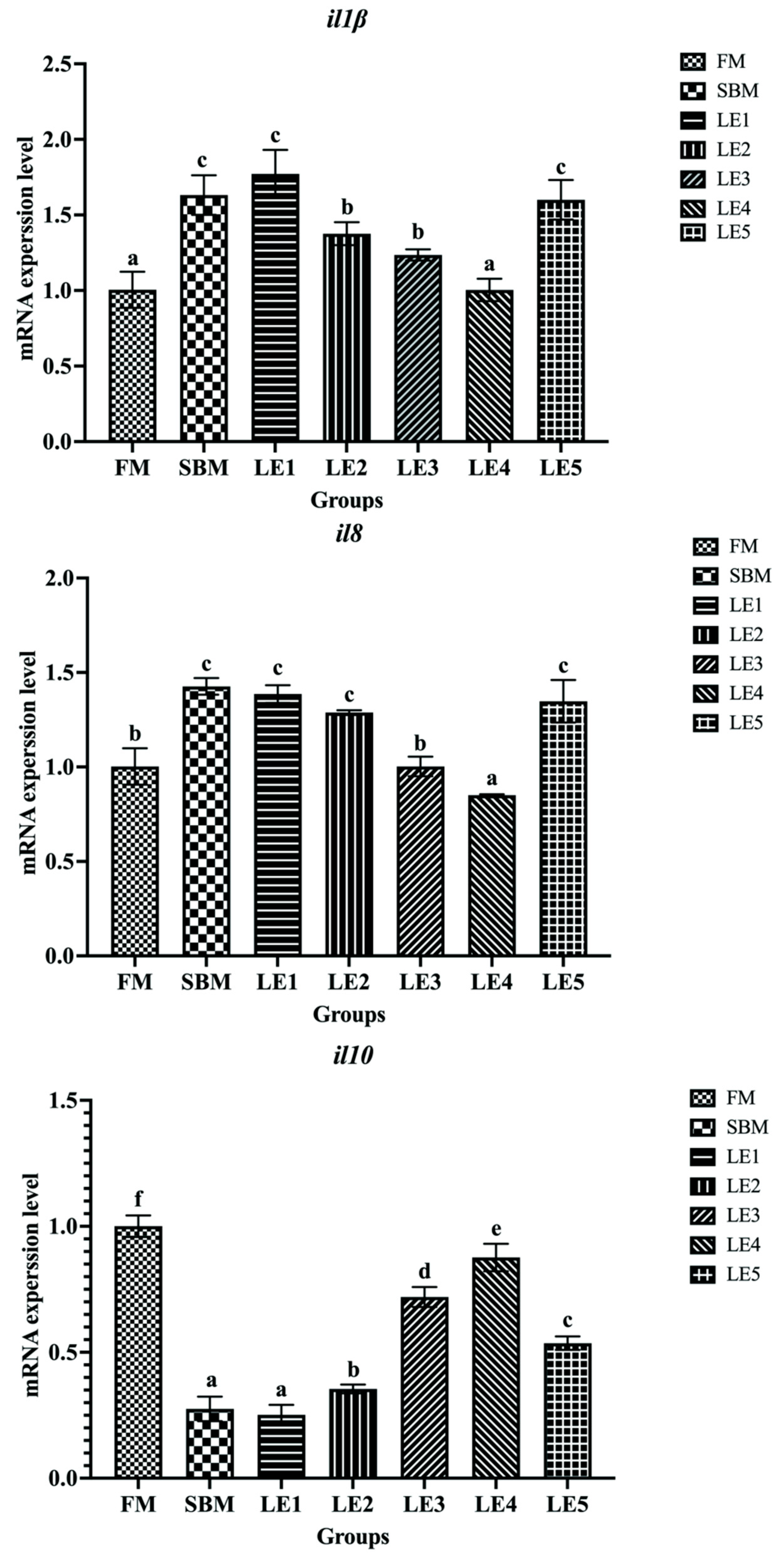 3.2. Relative mRNA Expression of il1β, il8, and il10