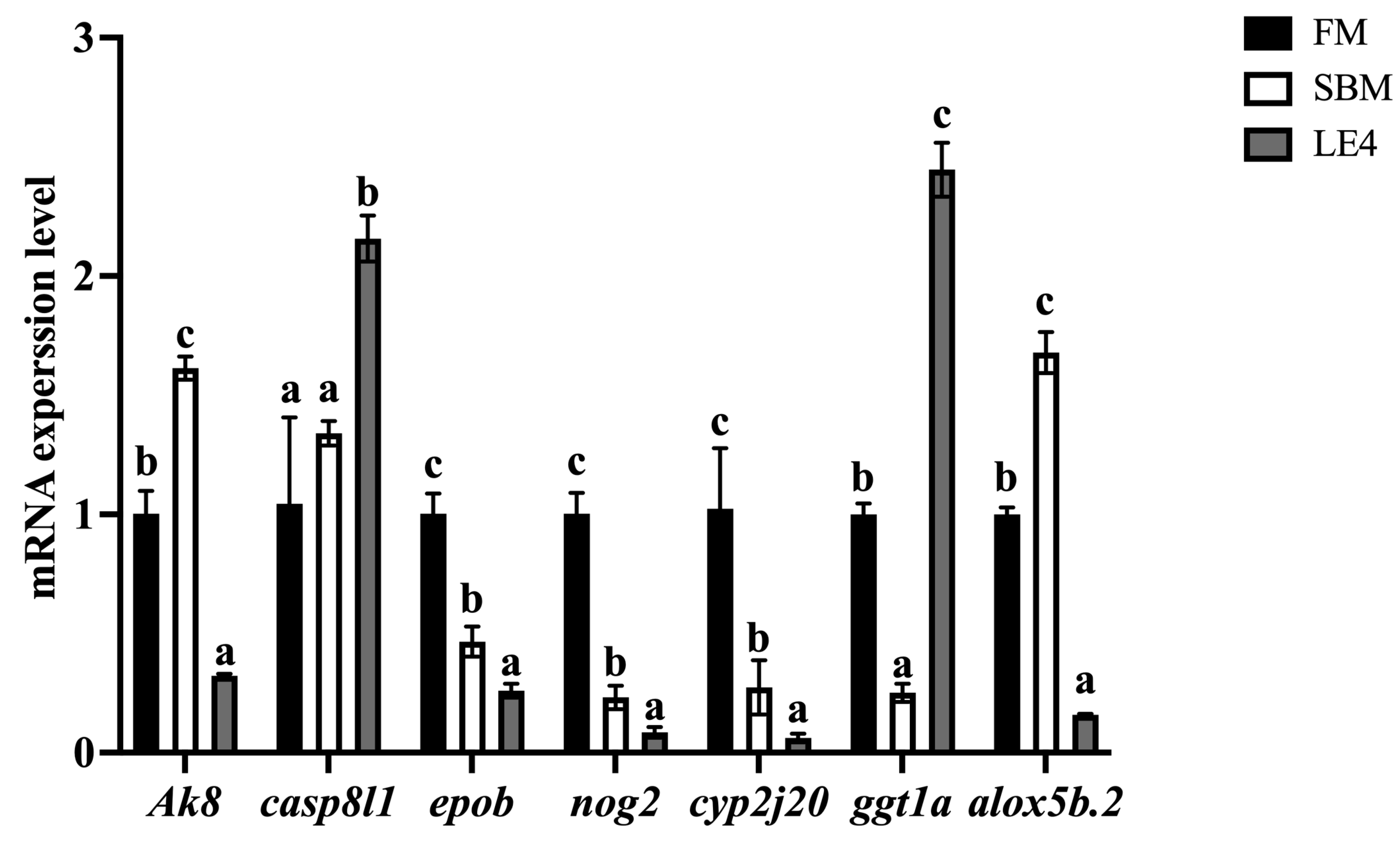 - Wu, N.; Wang, B.; Cui, Z.W.; Zhang, X.Y.; Cheng, Y.Y.; Xu, X.; Li, X.-M.; Wang, Z.-X.; Chen, D.-D.; Zhang, Y.-A. Integrative Transcriptomic and Micrornaomic Profiling Reveals Immune Mechanism for the Resilience to Soybean Meal Stress in Fish Gut and Liver. Front. Physiol. 2018, 9, 1154. [Google Scholar] [CrossRef]