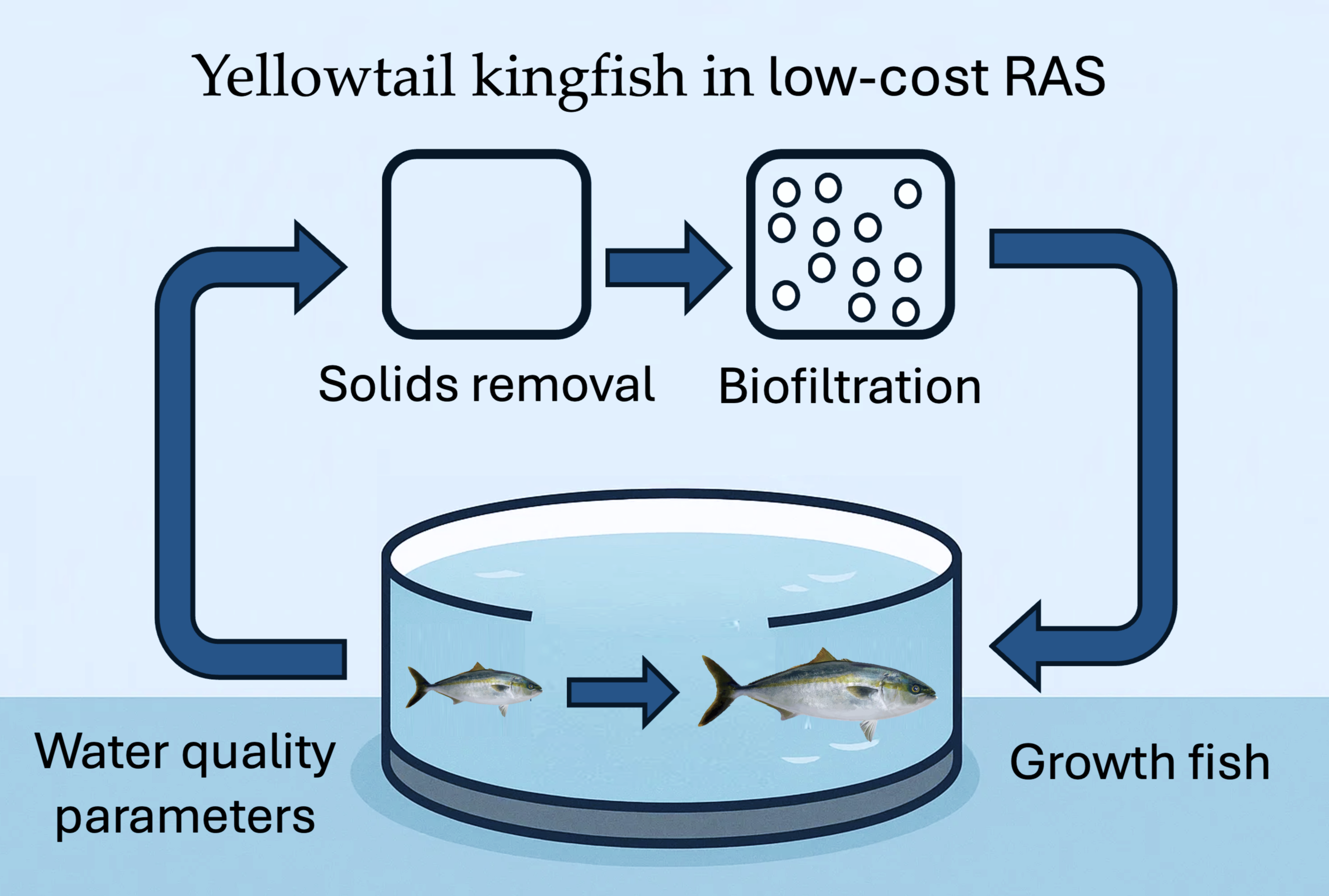 - This study demonstrates that S. lalandi can successfully adapt to a low-cost RAS system in arid conditions. However, future research should focus on hormonal induction and photothermal manipulation strategies to induce spawning, as well as long-term broodstock management to optimize reproduction and ensure the sustainability of farming in arid regions.