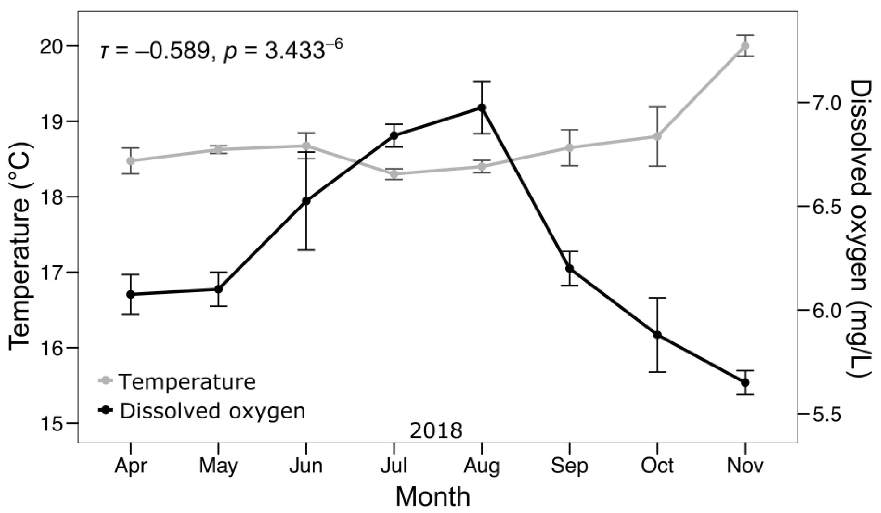 - Deacutis, C.F. Dissolved Oxygen; Springer: Berlin/Heidelberg, Germany, 2016; pp. 202–203. [Google Scholar]