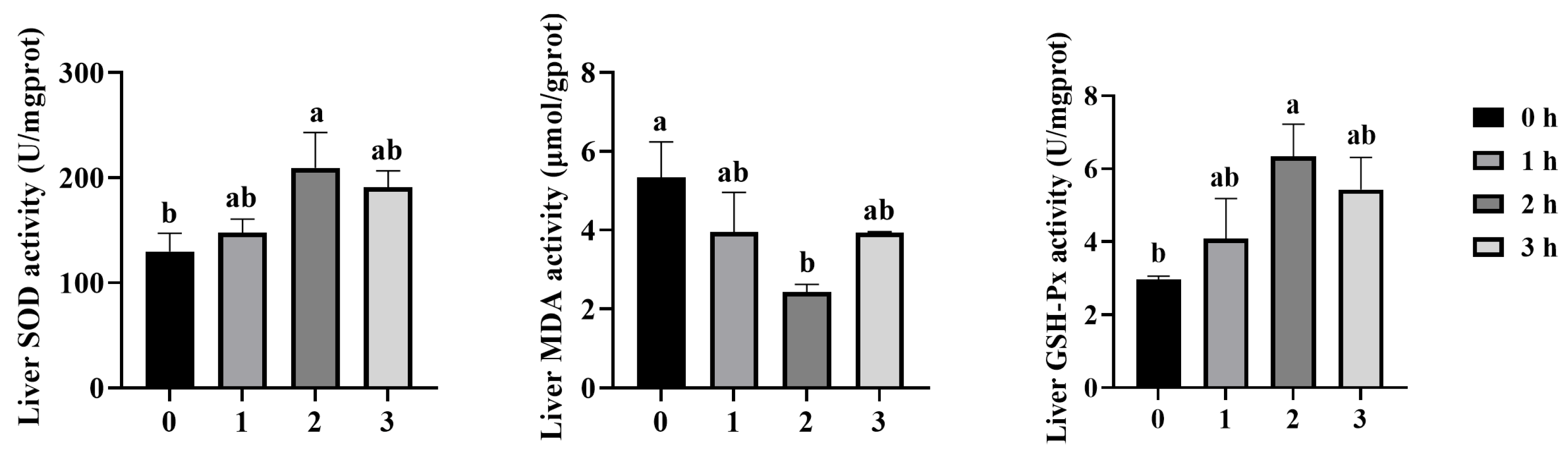 3.2. Effect of Antioxidant Enzyme Activity in Liver of Mandarin Fish