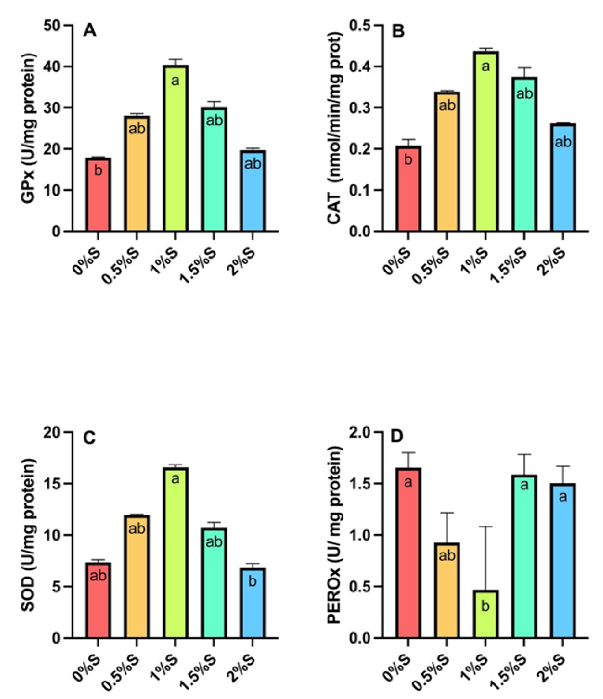 Chicago/Turabian StyleJiménez-León, Yuliana, Luis Daniel Jiménez-Martínez, Susana De La Rosa-García, Cesar Antonio Sepúlveda-Quiróz, Rafael Martínez-García, Graciela María Pérez-Jiménez, Otilio Méndez-Marín, Gloria Gertrudys Asencio-Alcudia, and Carlos Alfonso Álvarez-González. 2025. "Supplementation of Sage (Salvia officinalis) Essential Oil in Balanced Diets for Tropical Gar (Atractosteus tropicus) Larvae on Digestive and Antioxidant Enzyme Activities and Expression of Immune System Genes" Fishes 10, no. 11: 586. https://doi.org/10.3390/fishes10110586