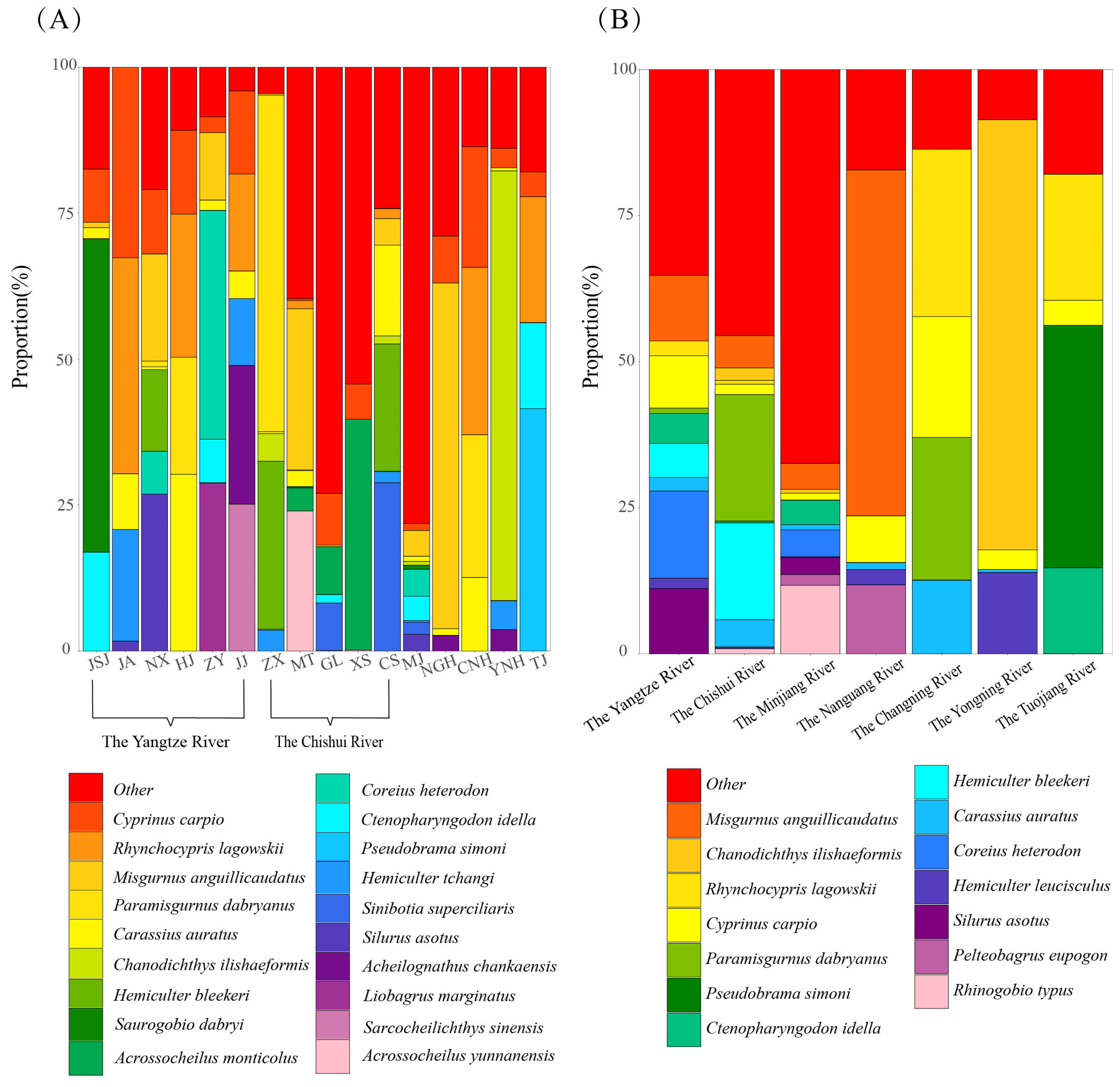 - Xia, Z.J.; Yu, F.D.; Tang, Y.Z.; Zhang, Y.Z.; Deng, B.L.; Liu, D.M.; Liu, F.; Wang, J.W. Site uniqueness contributions to fish β diversity in the Chishui River basin, Southwestern China. J. Fish. China 2023, 47, 128–142. [Google Scholar]
