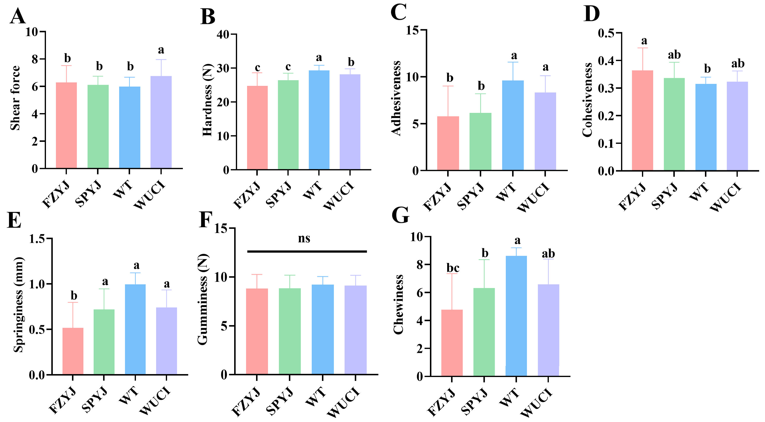 - Wang, M.; Feng, L.; Wu, P.; Liu, Y.; Ren, H.; Jin, X.; Zhou, X.; Jiang, W. Regulation of muscle springiness and hardness: The role of myo-inositol in enhancing fish flesh texture. Food Chem. X 2025, 29, 102788. [Google Scholar] [CrossRef] [PubMed]