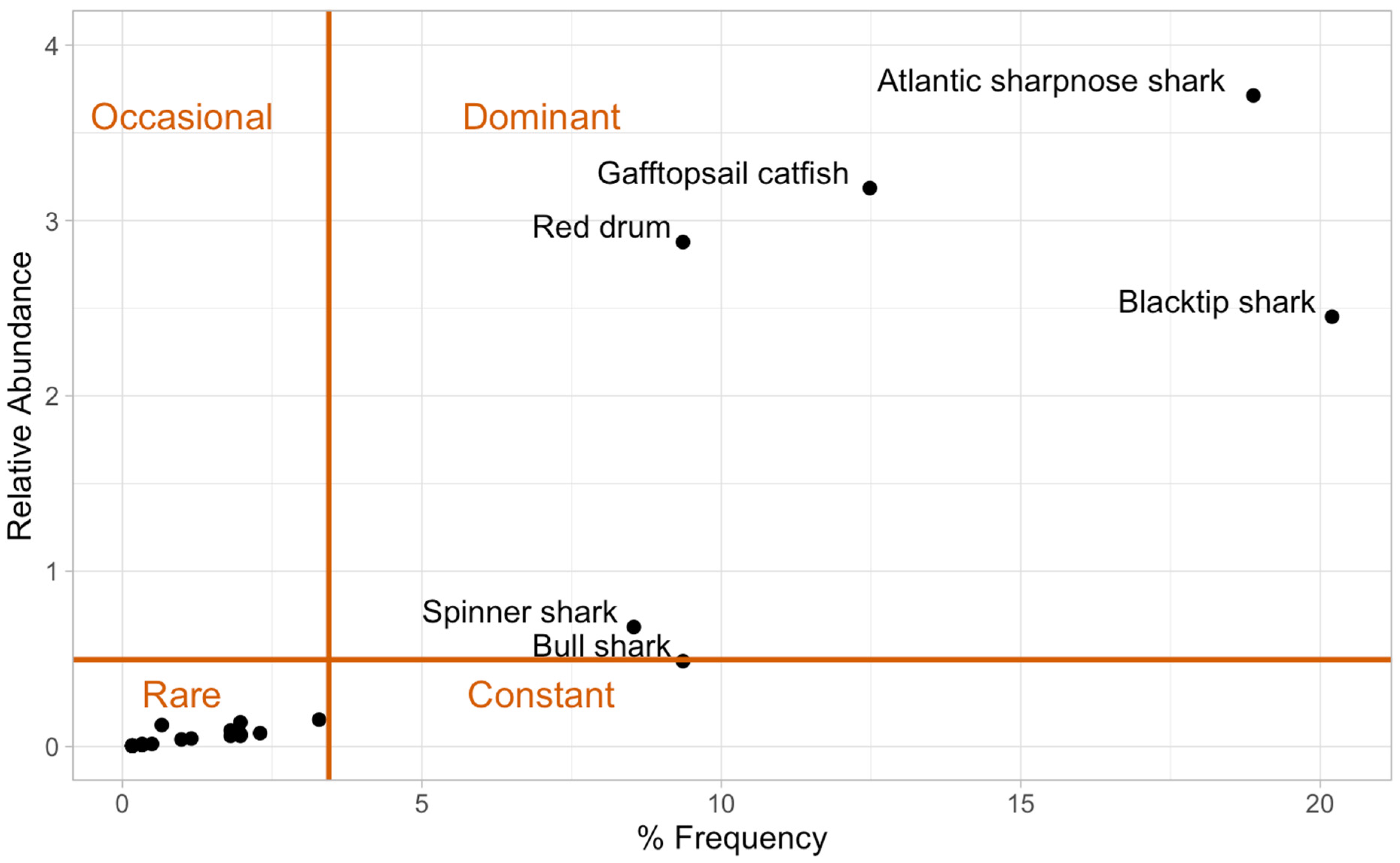 - Cottrant, E.; Matich, P.; Fisher, M. Boosted Regression Tree Models Predict the Diets of Juvenile Bull Sharks in a Subtropical Estuary. Mar. Ecol. Prog. Ser. 2021, 659, 127–141. [Google Scholar] [CrossRef]