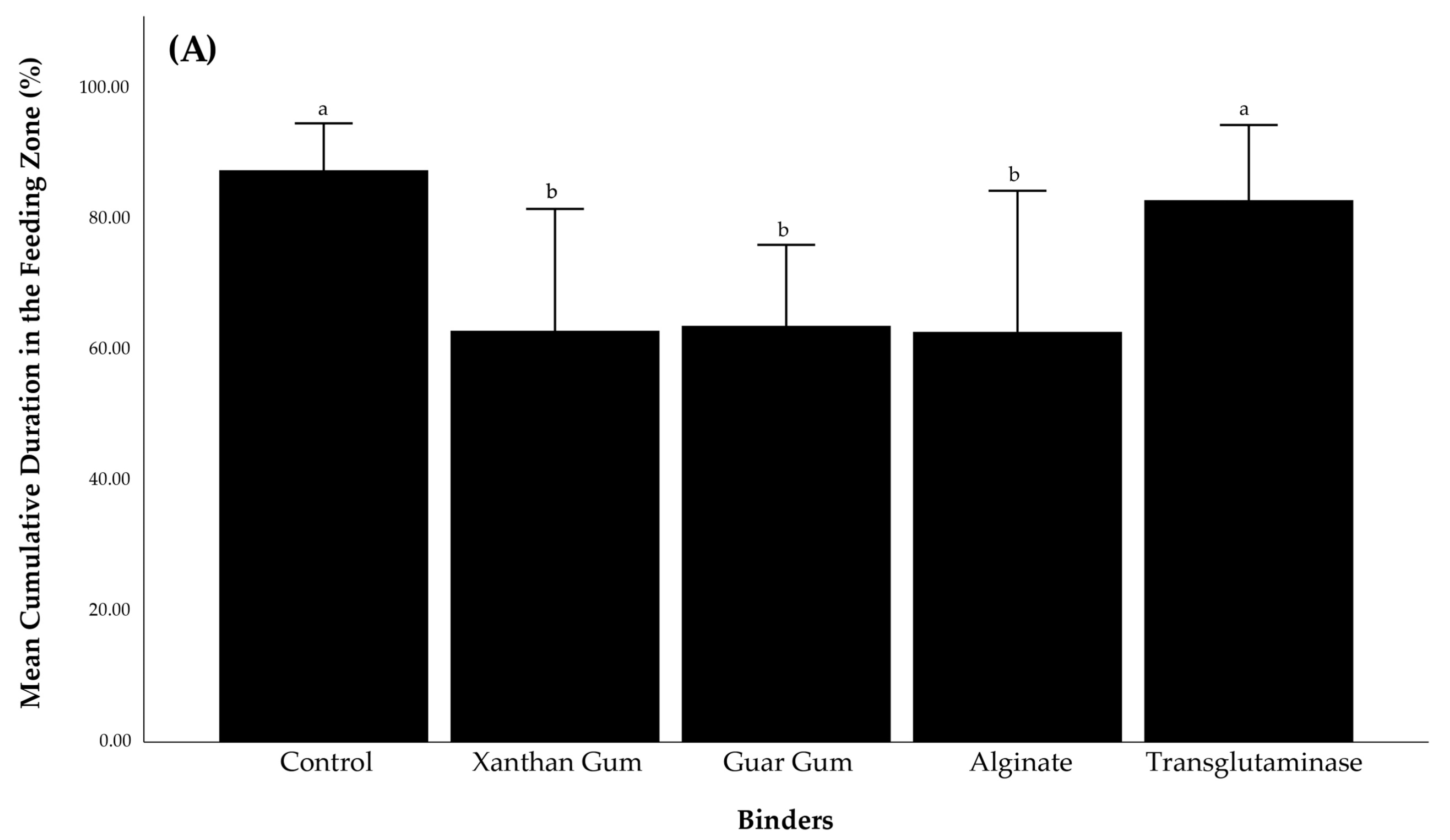 - O’Mahoney, M.; Mouzakitis, G.; Doyle, J.; Burnell, G. A novel konjac glucomannan-xanthan gum binder for aquaculture feeds: The effect of binder configuration on formulated feed stability, feed palatability and growth performance of the japanese abalone, Haliotis discus hannai. Aquac. Nutr. 2011, 17, 395–407. [Google Scholar] [CrossRef]