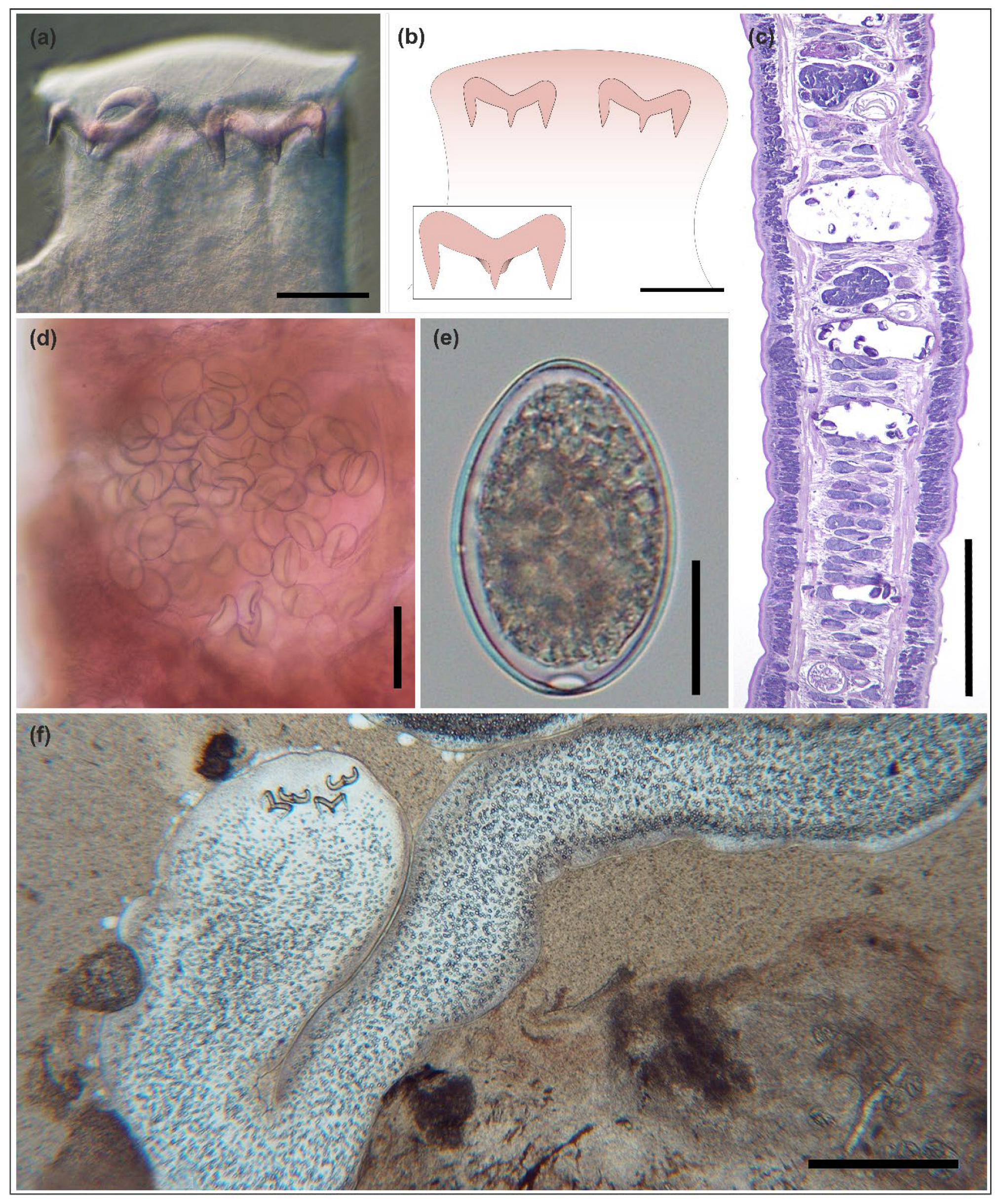 - Mackiewicz, J.S.; Cosgrove, G.E.; Gude, W.D. Relationship of Pathology to Scolex Morphology among Caryophyllid Cestodes. Z. Parasitenkd. 1972, 39, 233–246. [Google Scholar] [CrossRef] [PubMed]