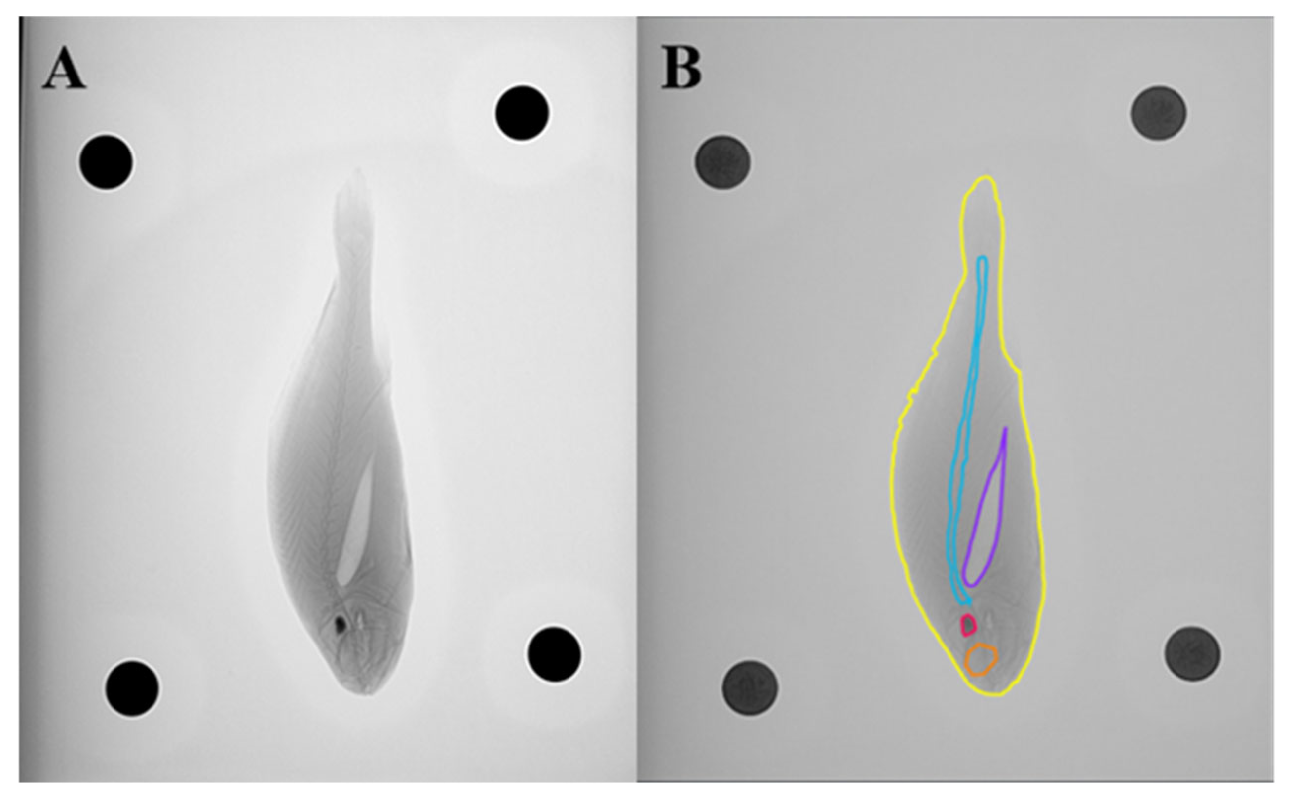 - Song, Y.; Shengmao, Z.; Heng, Z.; Fenghua, T.; Hanye, Z.; Yongchuang, S.; Xuesen, C. Application of X-ray in detection of fish tissue and trace elements. J. Appl. Opt. 2024, 45, 166–176. [Google Scholar] [CrossRef]