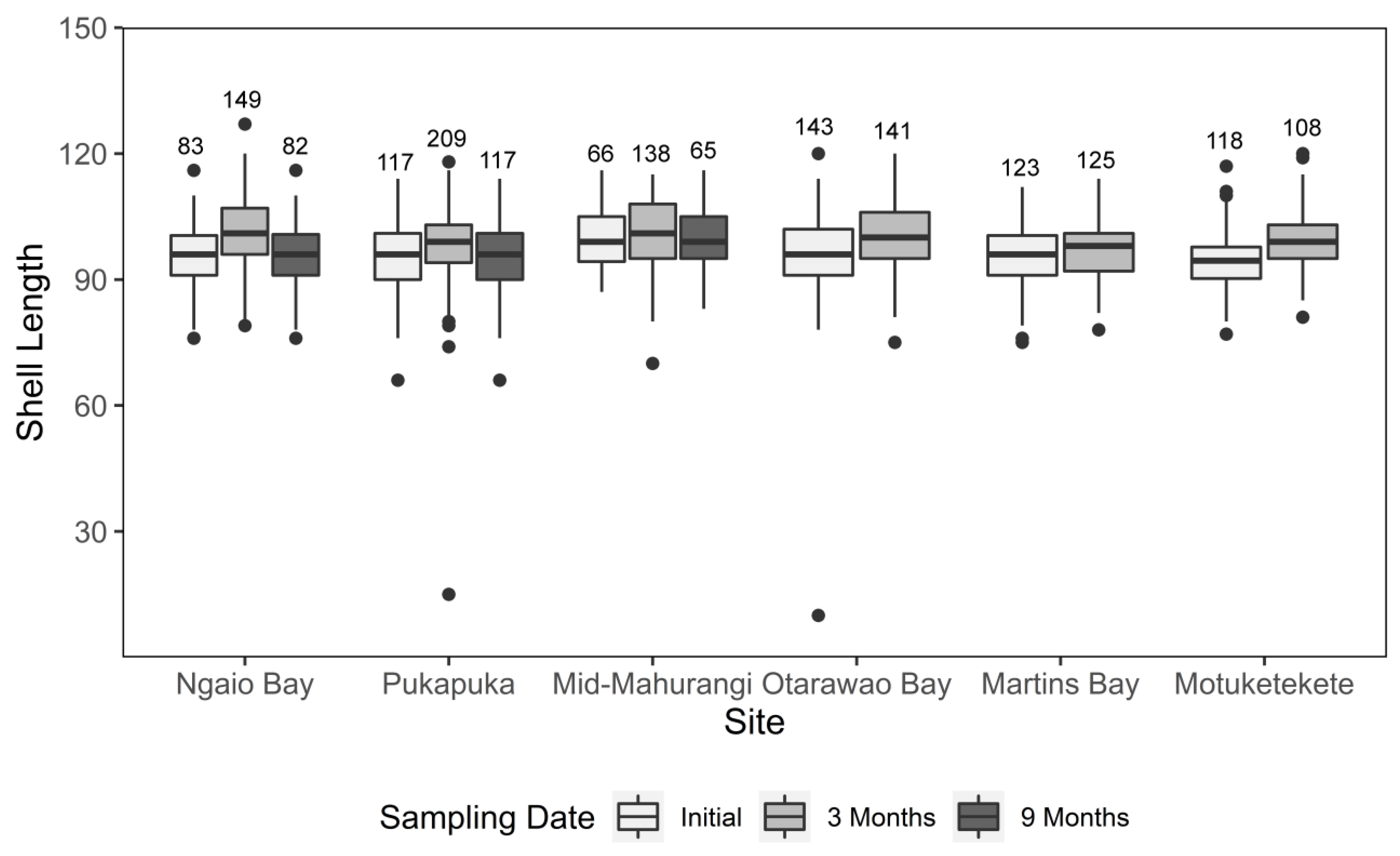 - Benjamin, E.D.; Handley, S.J.; Jeffs, A.; Olsen, L.; Toone, T.A.; Hillman, J.R. Testing habitat suitability for shellfish restoration with small-scale pilot experiments. Conserv. Sci. Pract. 2023, 5, e12878. [Google Scholar] [CrossRef]