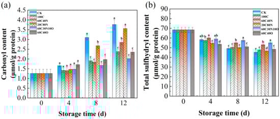 3.4. Changes of Carbonyl Content and Total Sulfhydryl Content