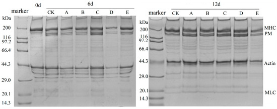 - Tan, N.; Shao, Y.; Xu, Y.; Li, Z.; Huang, Z.; Zhang, W.; Deng, S.; Zhang, B.; Zhang, L.; Yuan, P. Tandem mass tag-based quantitative proteomics analysis of modified atmosphere packaging in large yellow croaker (Pseudosciaena crocea) fillets during refrigerated storage. Food Chem. 2025, 463, 141744. [Google Scholar] [CrossRef] [PubMed]