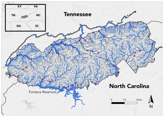 - Lennon, R.E. The Fishes of the Great Smoky Mountains National Park; Bureau of Sport Fisheries and Wildlife: Fairfax, VA, USA, 1960. [Google Scholar]