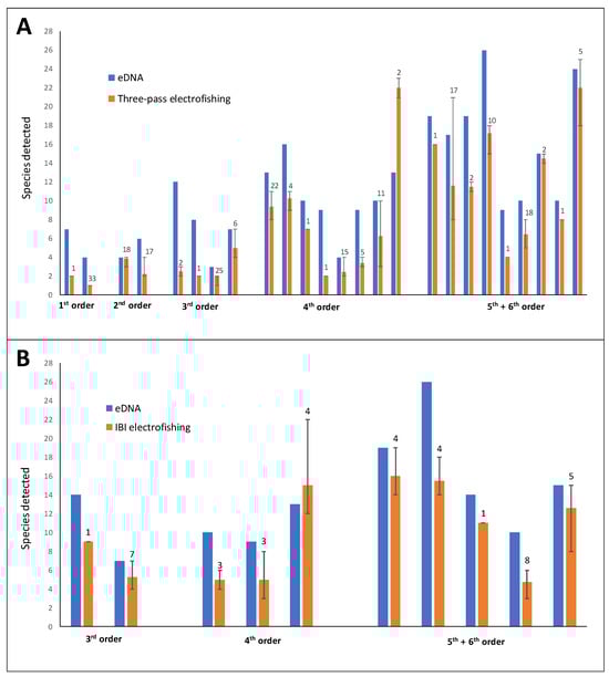 - Liu, Z.; Hu, C.; You, W.; Li, S.; Wu, Y.; Liang, Y.; Chu, L.; Yan, Y.; Zhang, C. Comparison Between Environmental DNA Metabarcoding and Traditional Survey Method to Identify Community Composition and Assembly of Stream Fish. Ecol. Evol. 2024, 14, e70627. [Google Scholar] [CrossRef]