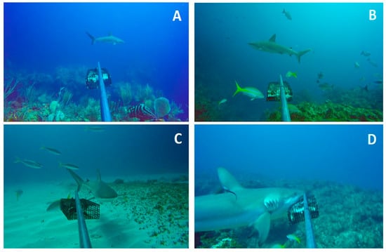 Despite the advantages of the previously applied techniques, no shark species had been reported during the sampling, even though there were reports of sightings by divers and local fishermen in different areas of the park. Our study successfully applied the BRUVs methodology, which made it possible to determine the distribution of sharks and rays in different habitats of the GNP. Various studies have applied BRUVs in coral reefs to validate the presence of mesopredators and sharks [,,,,] and demonstrate the effectiveness of the management of these species [,,]. In this single study, the BRUVs attracted a total of 64 fish species out of the 201 recorded for the park [], including individuals from the families Carcharhinidae, Urolophidae, and Sphyrnidae, which had not yet been reported, in addition to recording other functional groups such as fish herbivores, investors, piscivores, piscivores/invertivores, and planktivores. Along with the demonstrated efficiency, another benefit of this methodology for the study of sharks is its non-destructive and non-extractive nature, which makes it a suitable alternative with more benefits than more traditional methods of capture [,].