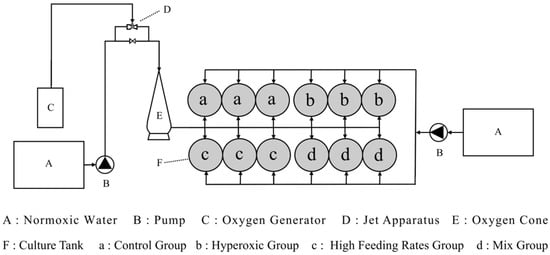 - Aksakal, E.; Ekinci, D. Effects of Hypoxia and Hyperoxia on Growth Parameters and Transcription Levels of Growth, Immune System and Stress Related Genes in Rainbow Trout. Comp. Biochem. Physiol. Part A Mol. Integr. Physiol. 2021, 262, 111060. [Google Scholar] [CrossRef]