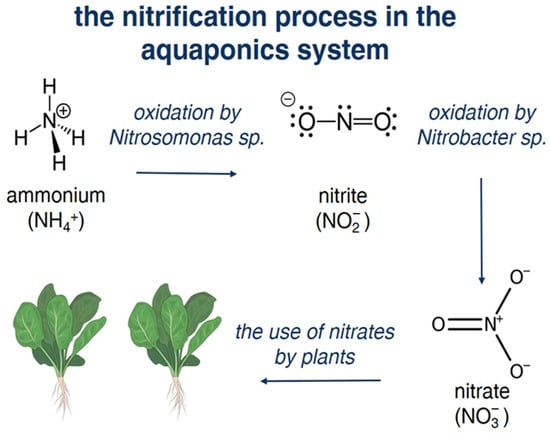 Nitrifying microorganisms of the genera Nitrosomonas, Nitrobacter, and Nitrospira, which live in water, are added as a bacterial component in aquaponic systems [34]. They represent three key genera of bacteria that play crucial roles in the nitrogen cycle of aquaponic systems.