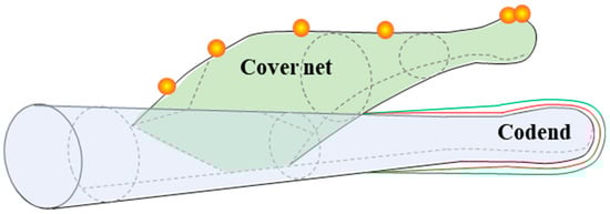 First, the three-layer COD design should be redesigned. The current COD net, intended for resource surveys, has a small mesh size, resulting in significantly slower water flow and higher internal pressure than that of the commercial trawl nets with a single-layer COD. Previous studies on trawl nets have indicated that the selectivity of the COD mesh can change when a kite cover is installed, as it further reduces water flow []. These findings suggest that fish may be unable to enter the COD via the guide net owing to the three-layer netting. In future research, we intend to use a single-layer net similar to those used in commercial trawling and conduct further investigations.
