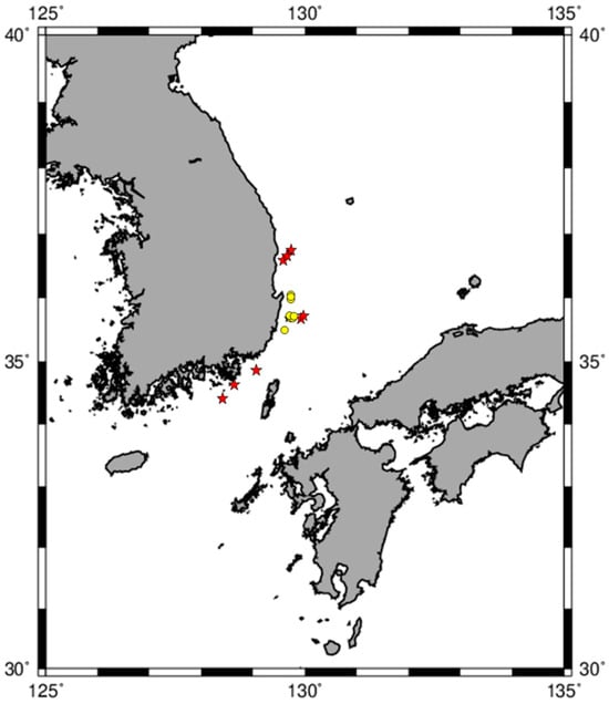 As shown in Figure 3, this study conducted fishing operations in the southern [] and eastern [,] coastal regions of Korea, where marine mammals such as whales, dolphins, and finless porpoises are frequently sighted.