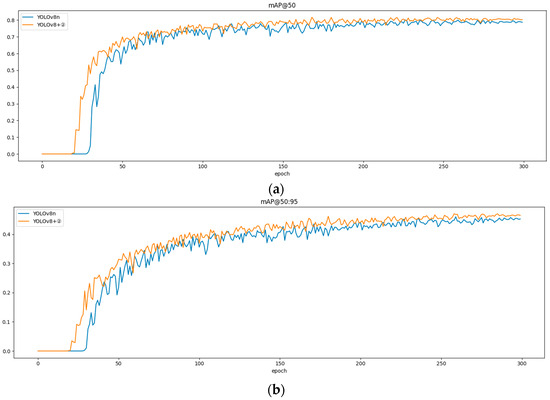 (a) mAP@50 comparison and (b) mAP@50:95 comparison.