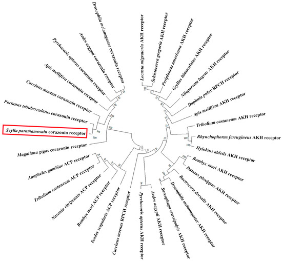 - Tu, S.; Ge, F.; Han, Y.; Wang, M.; Xie, X.; Zhu, D. Putative role of corazonin in the ovarian development of the swimming crab Portunus trituberculatus. Front. Mar. Sci. 2022, 9, 976754. [Google Scholar] [CrossRef]