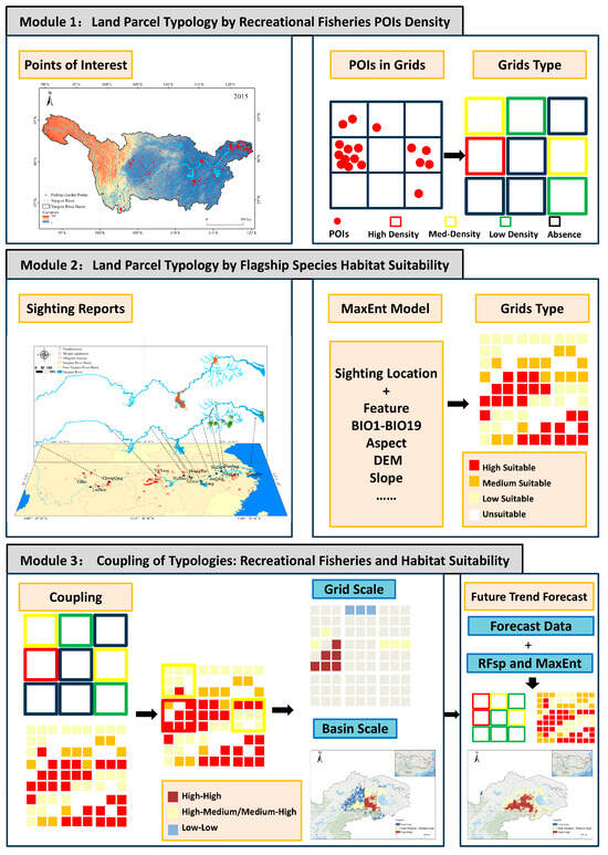 This study employs the Rfsp and MaxEnt models to assess the spatial overlap between current and future recreational fishing activity zones and flagship species’ suitable habitats in the Yangtze River Basin, providing insights for fisheries policy and spatial planning.